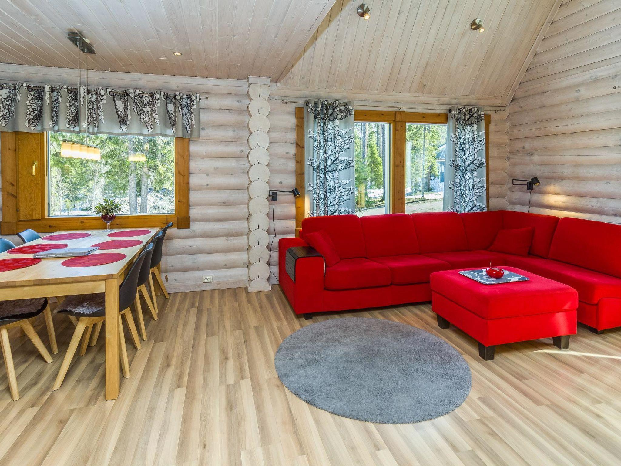 Welcome to enjoy a holiday in this magnificent log-built semi-detached cabin, which offers ideal conditions for both families and groups of friends. This bright and spacious cabin is perfect for relaxing and enjoying nature year-round. The ground floor features a bedroom with a double bed. The spacious loft has two single beds, a sofa bed for two, and additional mattresses. The cabin accommodates a maximum of 6 people, so there is plenty of space for everyone. The living room/kitchen allows you to prepare delicious meals during your stay, and the electric sauna provides relaxing moments after an active day.