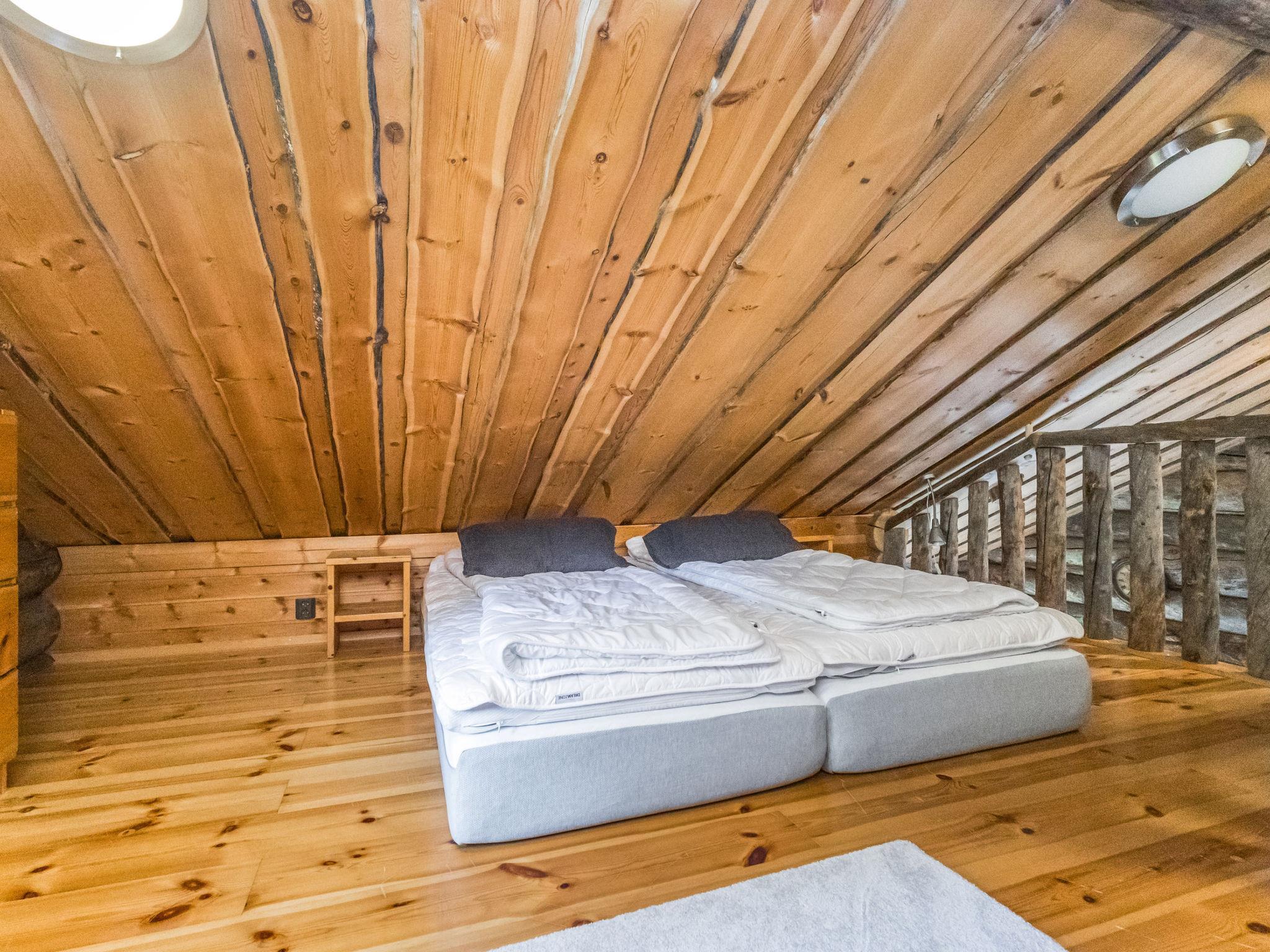 On the ground floor, there is a bedroom with a 160 cm wide bed, as well as a cozy living room/kitchen, sauna, and washroom with WC. The loft offers three beds: two are 90 cm wide and one is 120 cm wide.