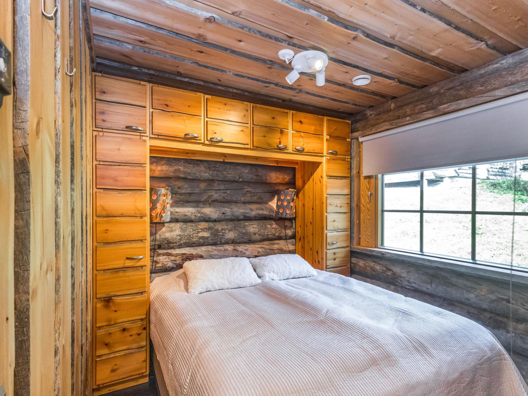 Semi-detached kelo log cabin built in 2006, located in Saarua-aho, Ruka. The cabins are separated by a carport, so there is no direct wall-to-wall neighbor.
