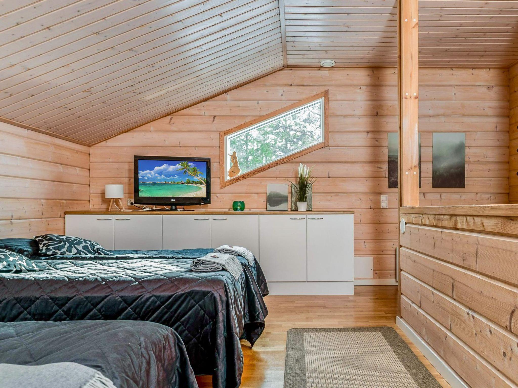 Built in 2007, the cabin seamlessly combines modern comforts with traditional cabin charm. The ground floor features one bedroom with 140 wide double bed. On the upper floor, there are two bedrooms: both with a double beds 160 cm. The upper floor hall includes a 120 cm wide bed and two separate 80 cm wide beds. The cabin also boasts an electric sauna for relaxation and a living room/kitchen, ideal for shared cooking moments.
