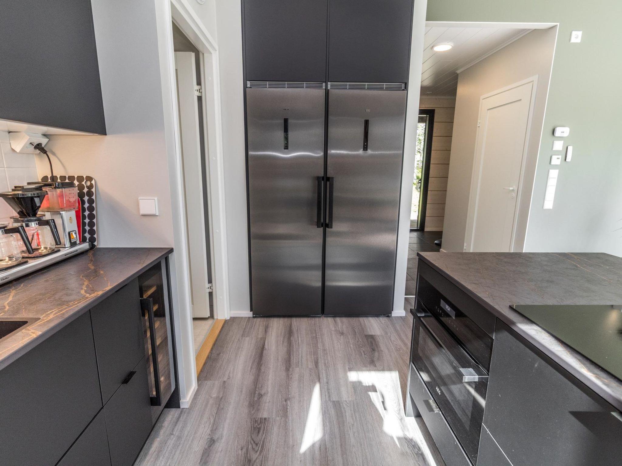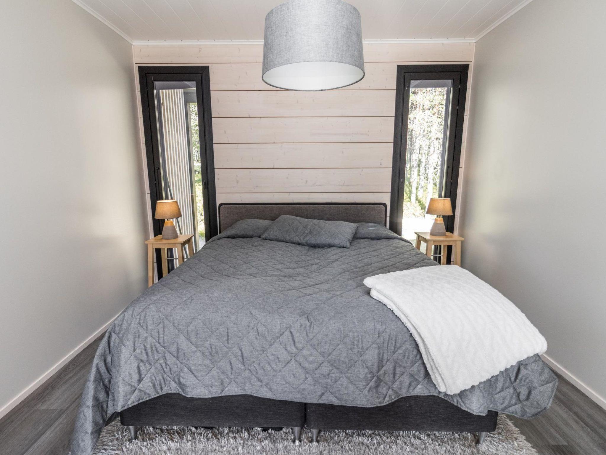 Bright and modern cabin built in 2023, located on the shore of Lake Kitkajärvi, offering a cozy setting for a holiday in the heart of nature. The cabin has one bedroom with a double bed and an adjoining sleeping alcove with two mattresses, and another bedroom that doubles as a workspace with a sofa bed for two. This layout makes the cabin a practical choice for both families and couples.