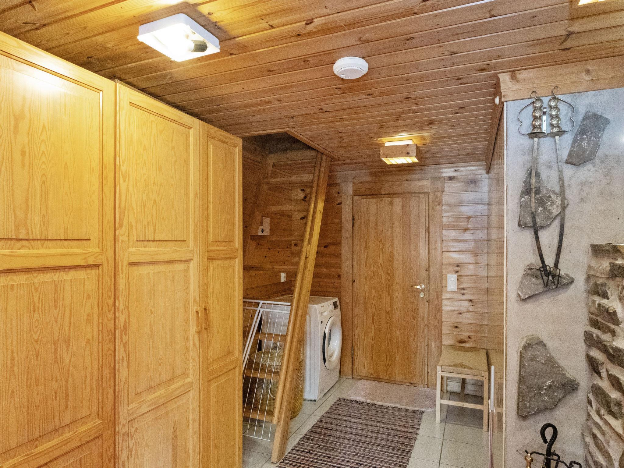 At the heart of the cabin is the inviting living room and open-plan kitchen, providing a comfortable space for spending time together. After a day of outdoor activities, you can unwind in the sauna and washroom — the perfect way to relax in true Finnish style.
