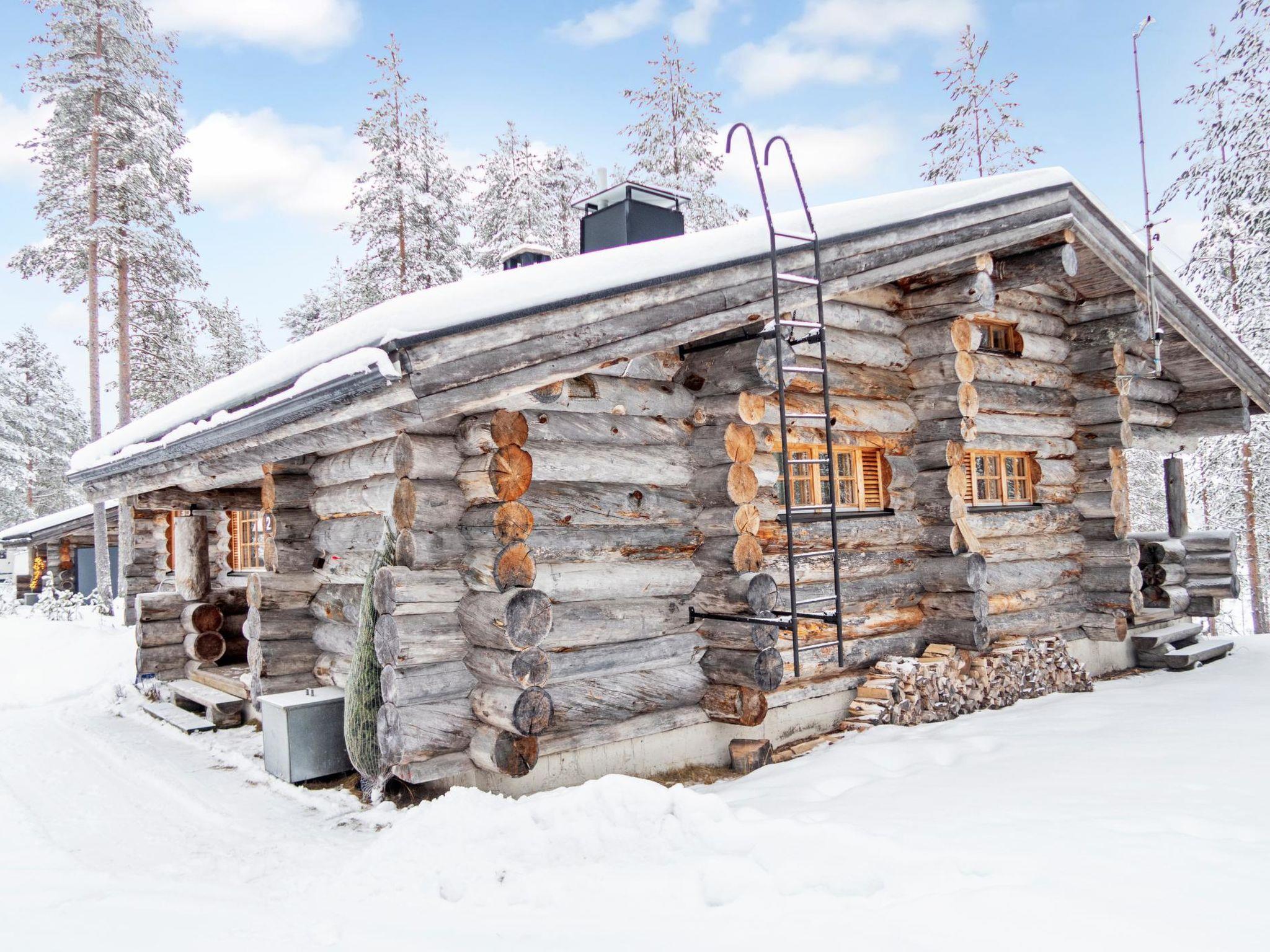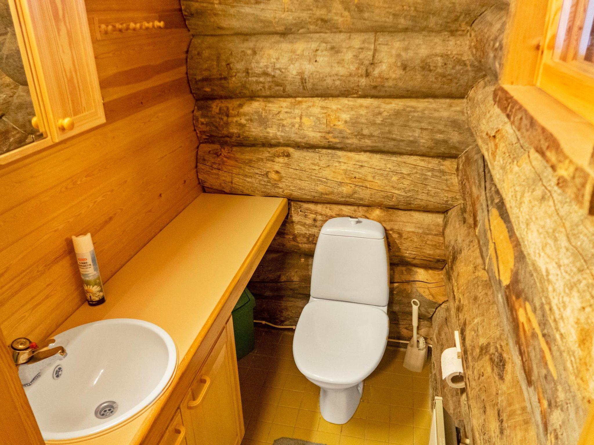 Silverlog chalet 1990, living room/kitchen, bedroom with 2 beds, 2 bedrooms, both with 2 bunk beds, sleeping loft 3 mattresses (very steep stairs to loft), sauna (electric stove), washroom, dressing room, 2 separate WCs, open porch.