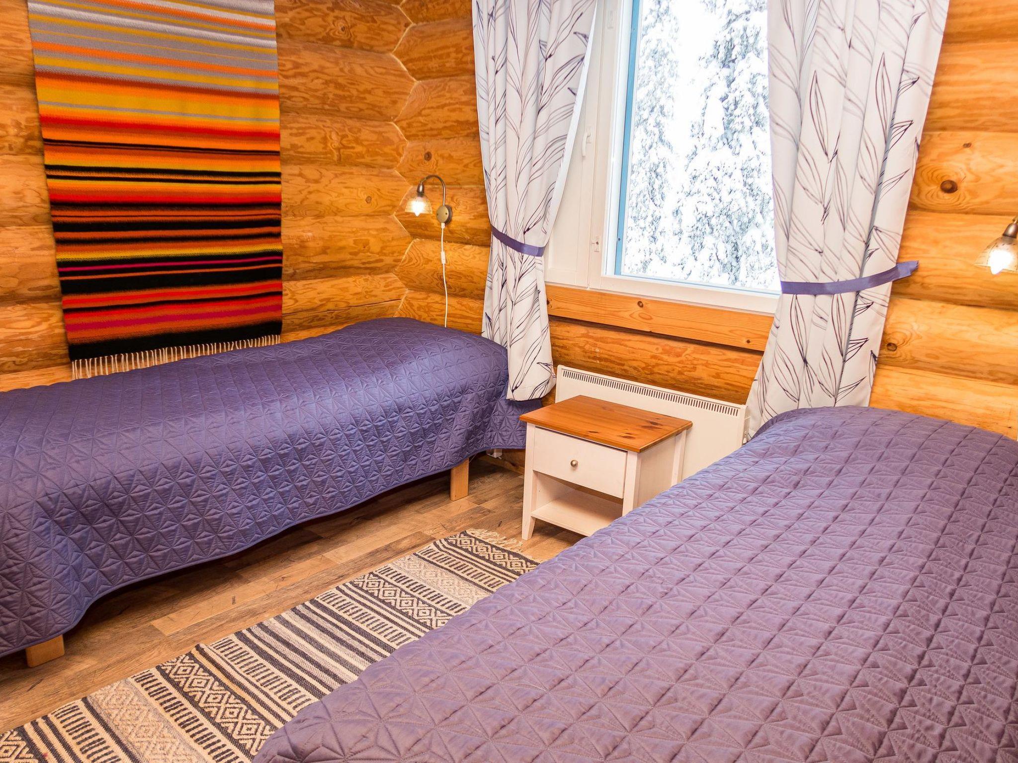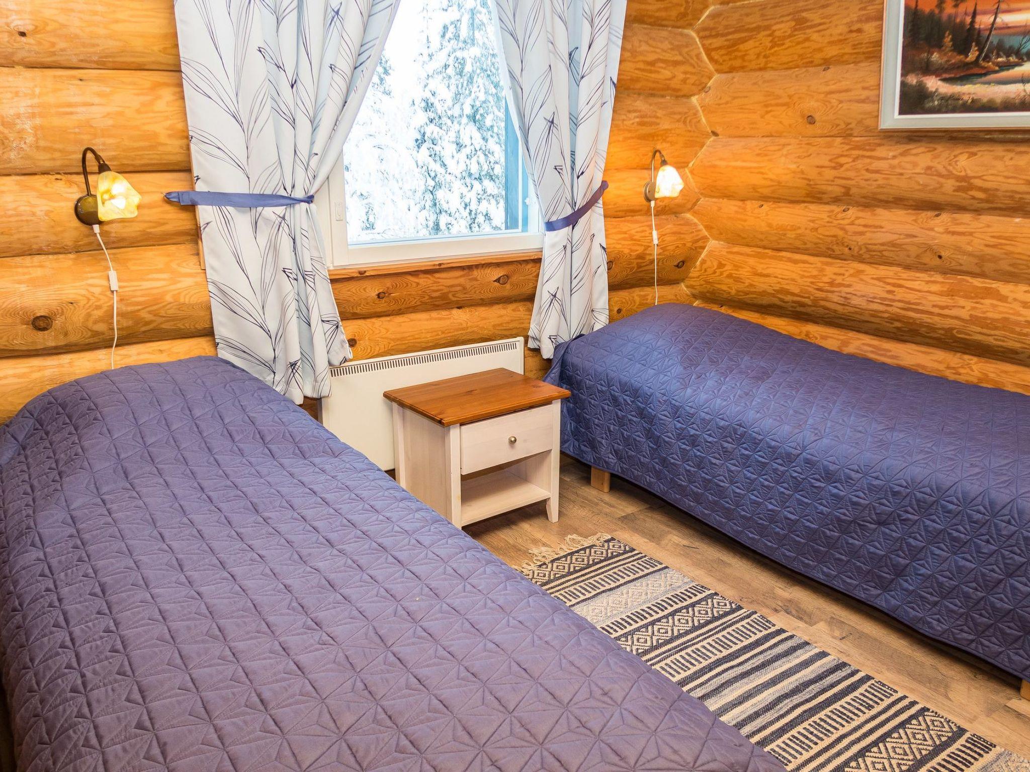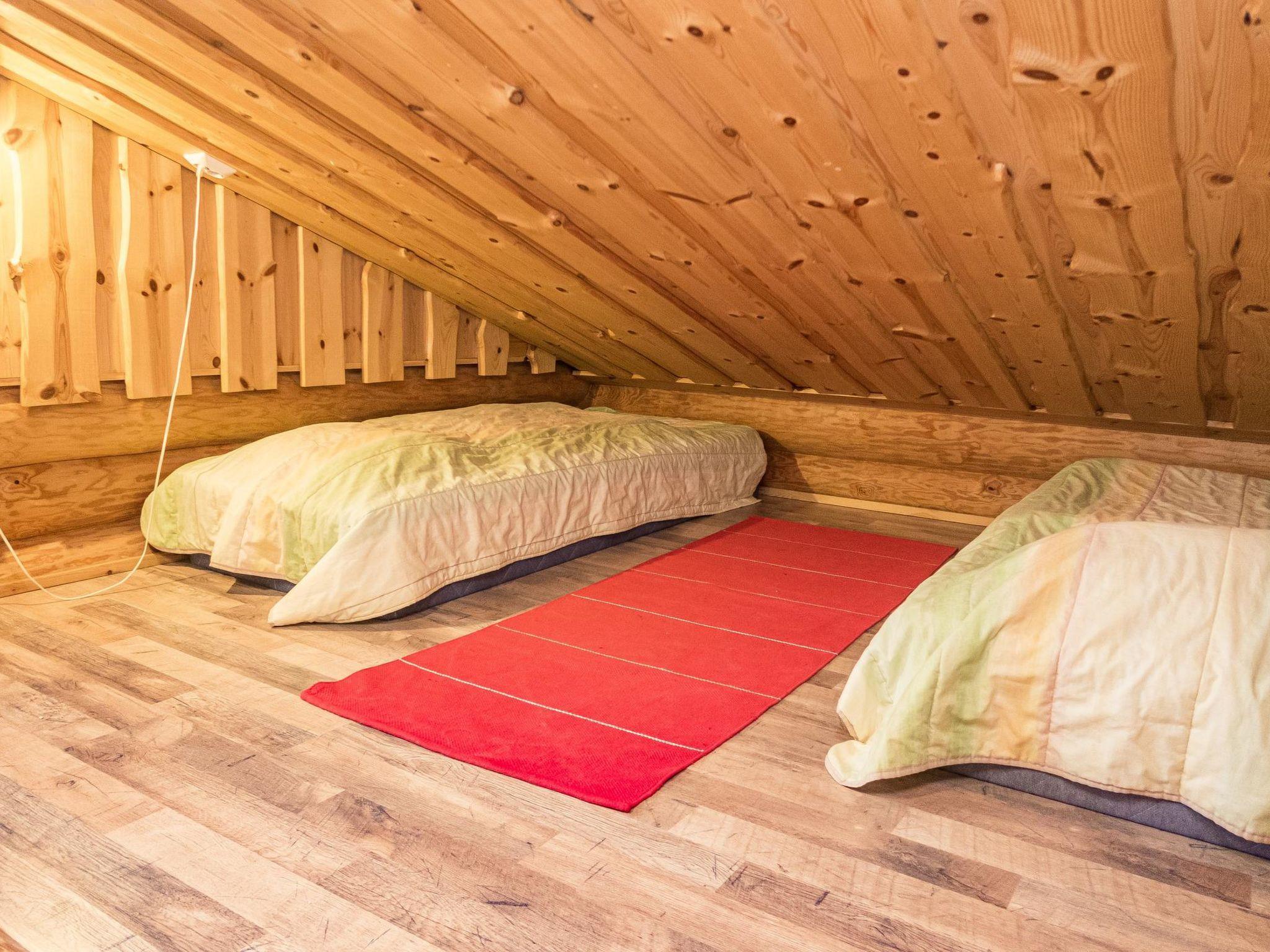 25 km north of Kuusamo, Vuosseli (Eastern Ruka) 400 m, Ruka village (Western Ruka) 4,3 km. Log-built holiday apartment, built in 2005, bedroom 1: double bed, bedrooms 2-3: 2 beds, loft (21 m², height 160 cm, steep stairs): 3 beds, combined kitchen/living room, electric sauna.