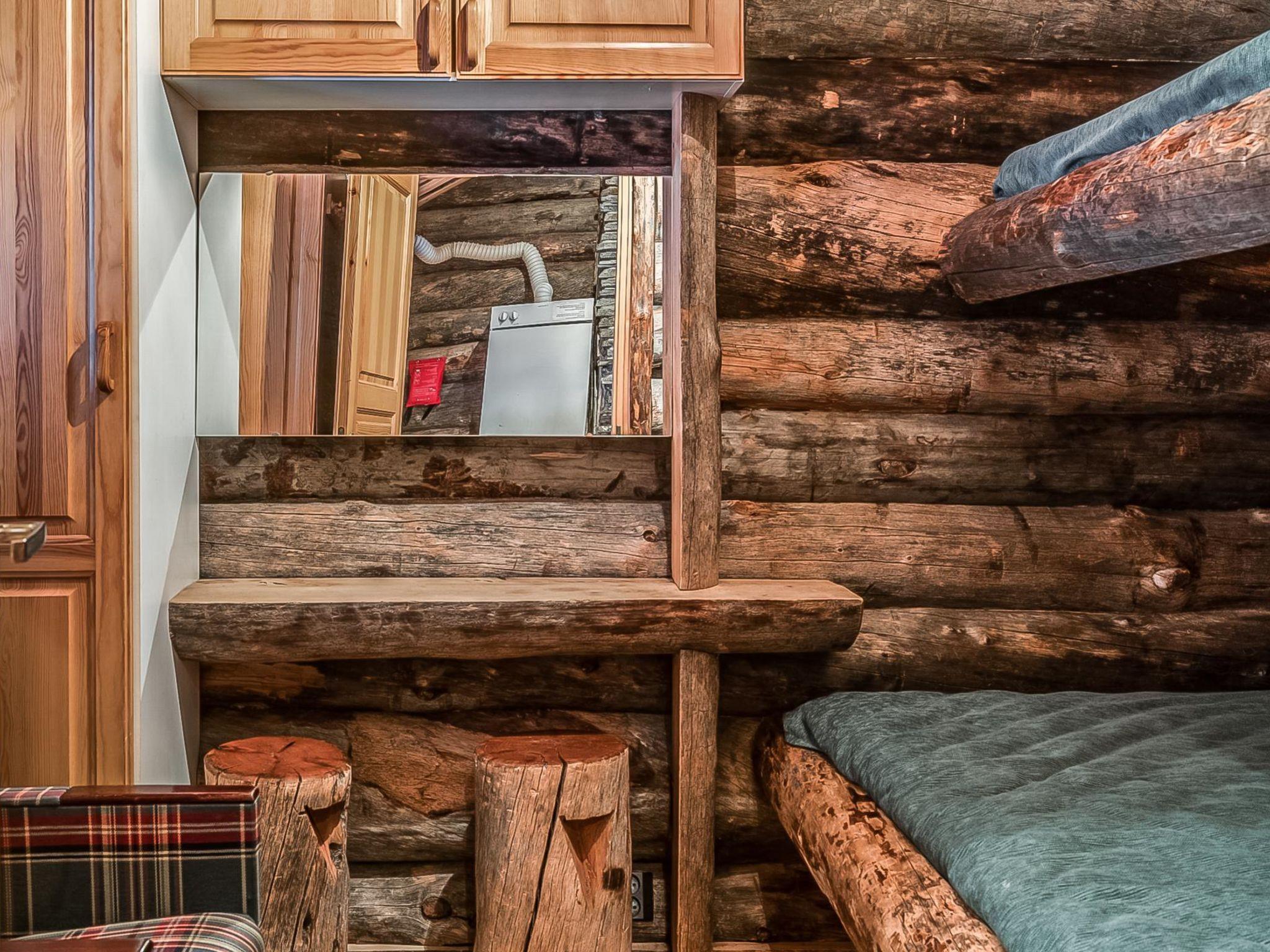 25 km north of Kuusamo, Ruka 2.6 km, Lake Kesäjärvi 50 m, mud bottom beach, rowing boat. Log-built apartment (gable apartment) built in 1990, bedroom 1: double bed (width 140 cm), bedroom 2: bunk bed (lower bed 120 cm and upper bed 80 cm width), 2 lofts: both 2 beds / loft, combined kitchen/living room, electric sauna. Please notice that this apartment can be booked maximum for 6 persons. Area 57 m² + 2 lofts totally 25 m² (lofts with sloping ceilings and steep stairs).