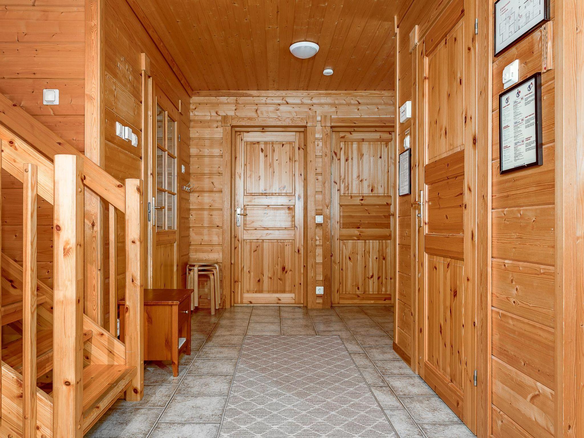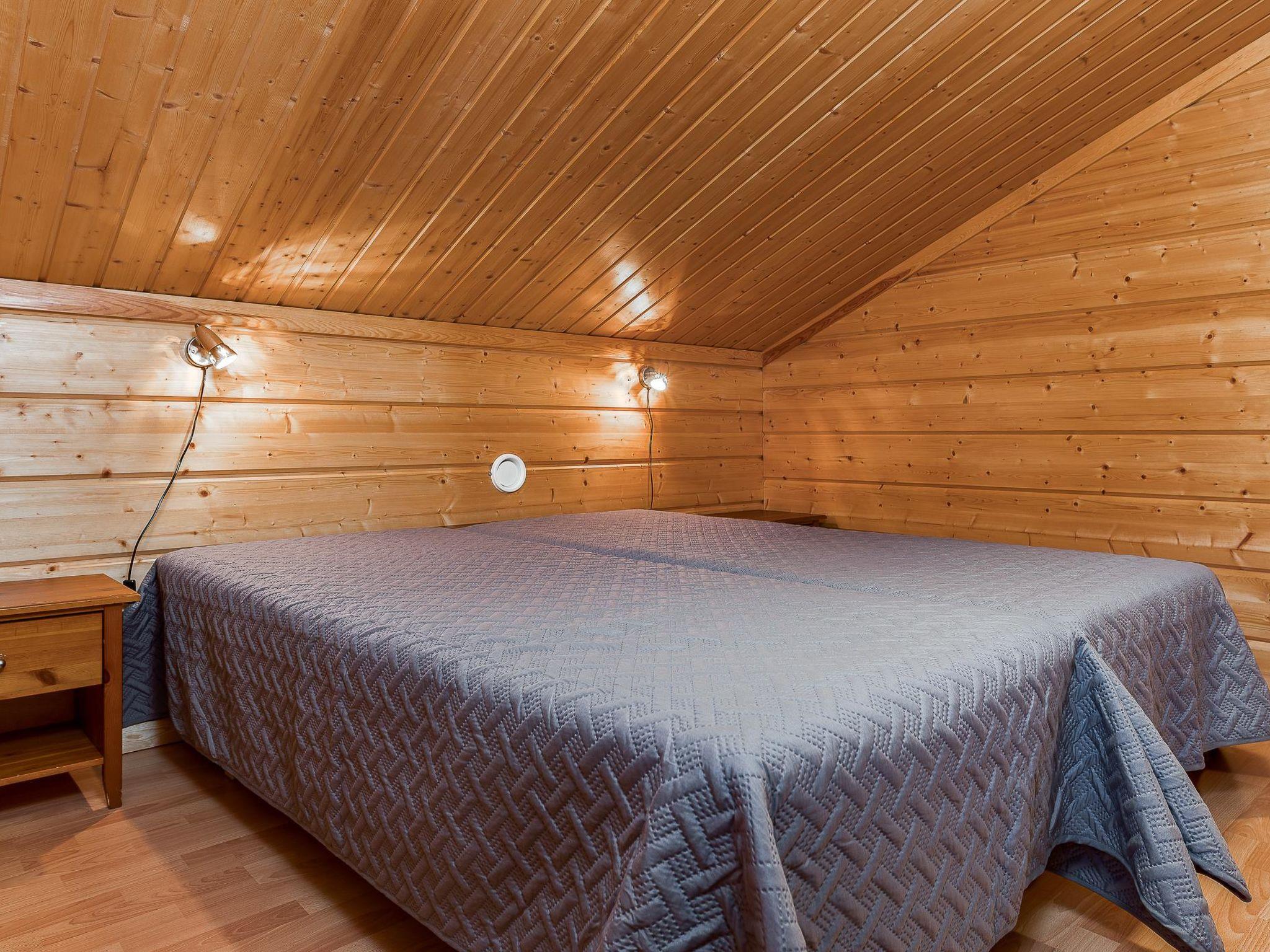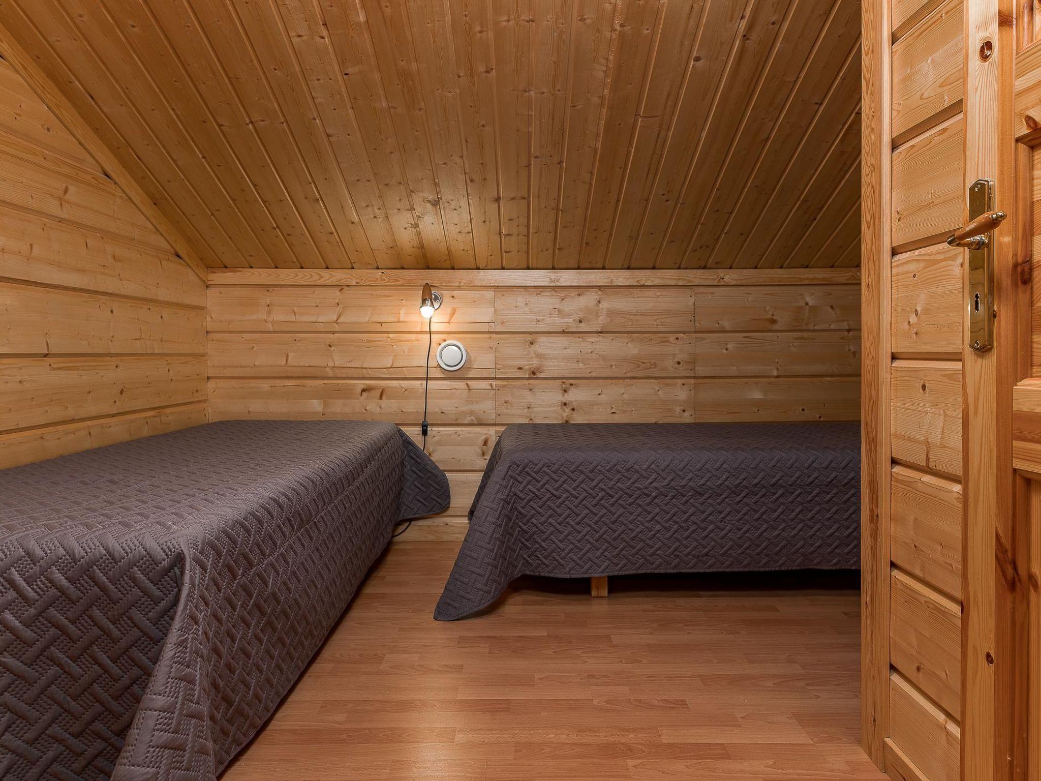 25km north of Kuusamo, Vuosseli (Eastern Ruka) 1.1 km. High level apartment in log-built semi-detached house, built in 2004, downstairs bedroom 1: double bed, bedroom 2: 2 beds, upstairs bedrooms 3-4: 2 beds, hall: convertible sofa, gentle stairs to upstairs, combined kitchen/living room, electric sauna.