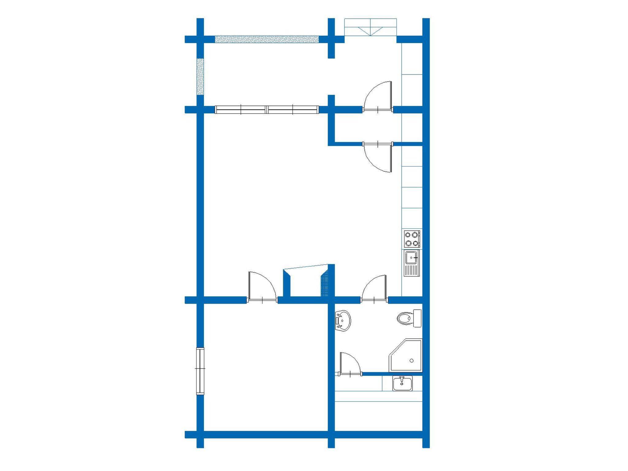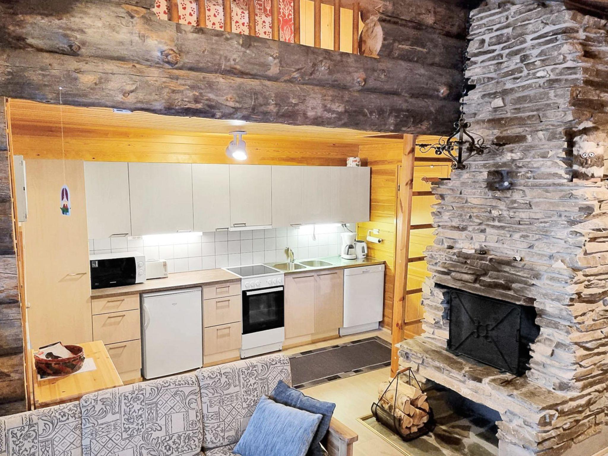 25km north of Kuusamo, Ruka 3km, Lake Kesäjärvi 200m. Log-built apartment, built in 1991, interior renovated in 2021, bedroom: double bed, living room: convertible sofa, loft (16 m², low room height, steep stairs) : 4 beds. Combined kitchen/living room. Electric sauna. Downstairs 43 m² + loft 16 m².