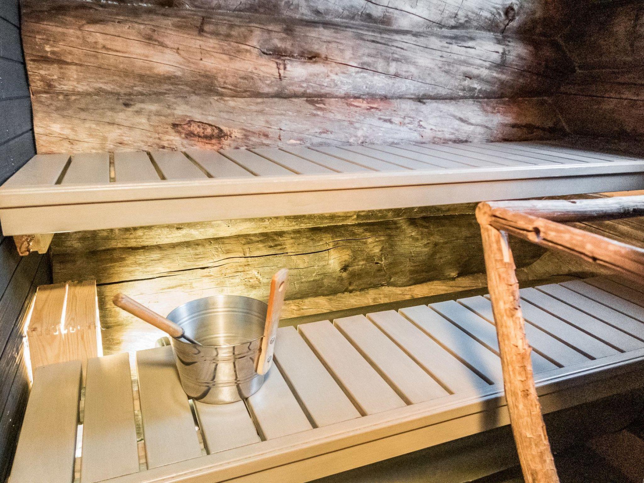 Downstaris one bedroom with 2 separate beds, living room with convertible sofa for two. Combined kitchen/living room, fireplace, bathroom with electric sauna ja toilet. Separate toilet with washing machine.