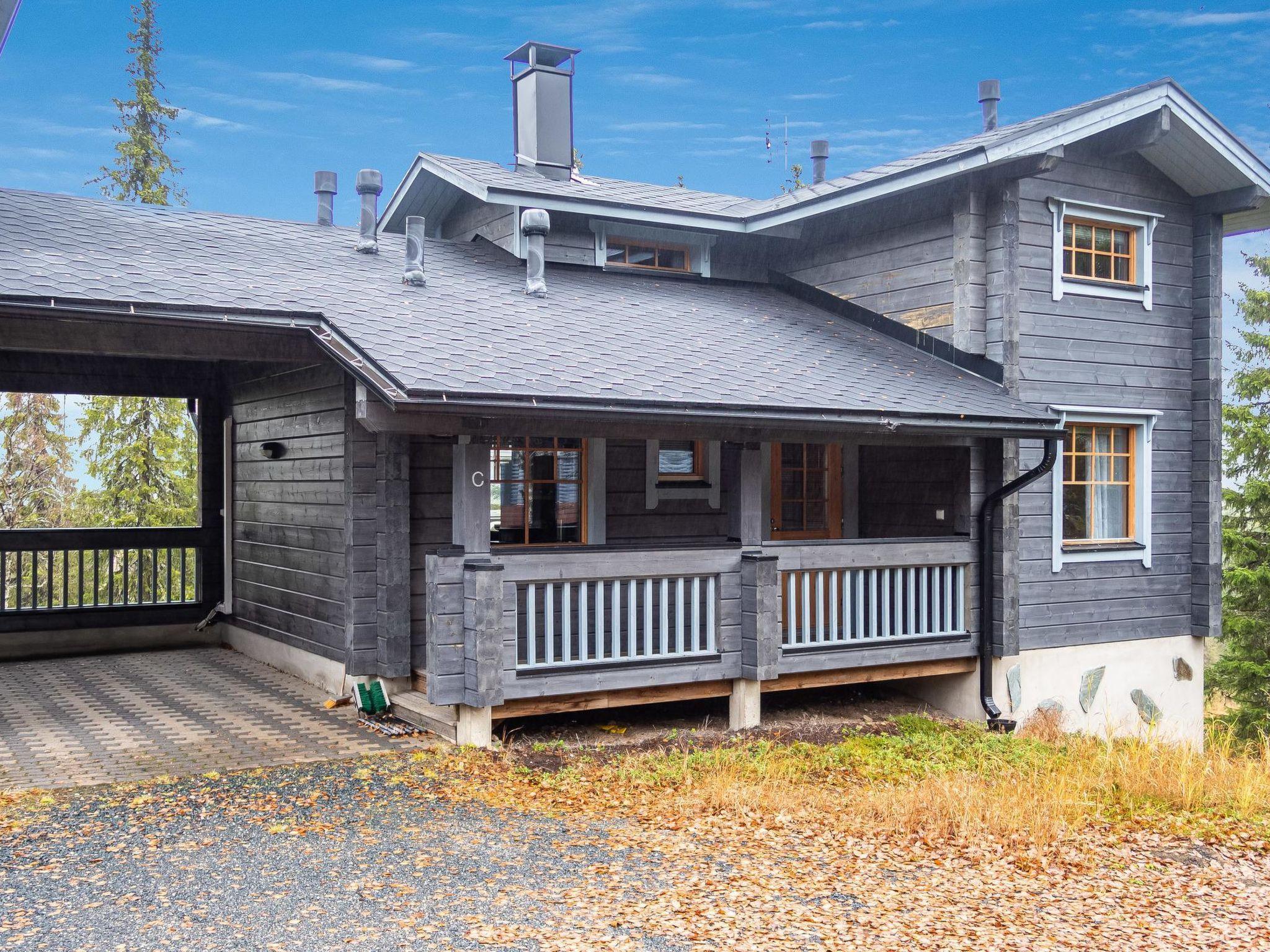 25 km north of Kuusamo, Vuosseli (Eastern Ruka) 300 m. Apartment in three-storey log-built row house of three apartments (end-of-house apartment), built in 2005, bedrooms 1-2: 2 beds, loft (14 m², 160 cm, partly 190 cm high): 2 spring mattress beds, steep and narrow spiral stairs, bathroom downstairs, combined kitchen/living room. Electric sauna.