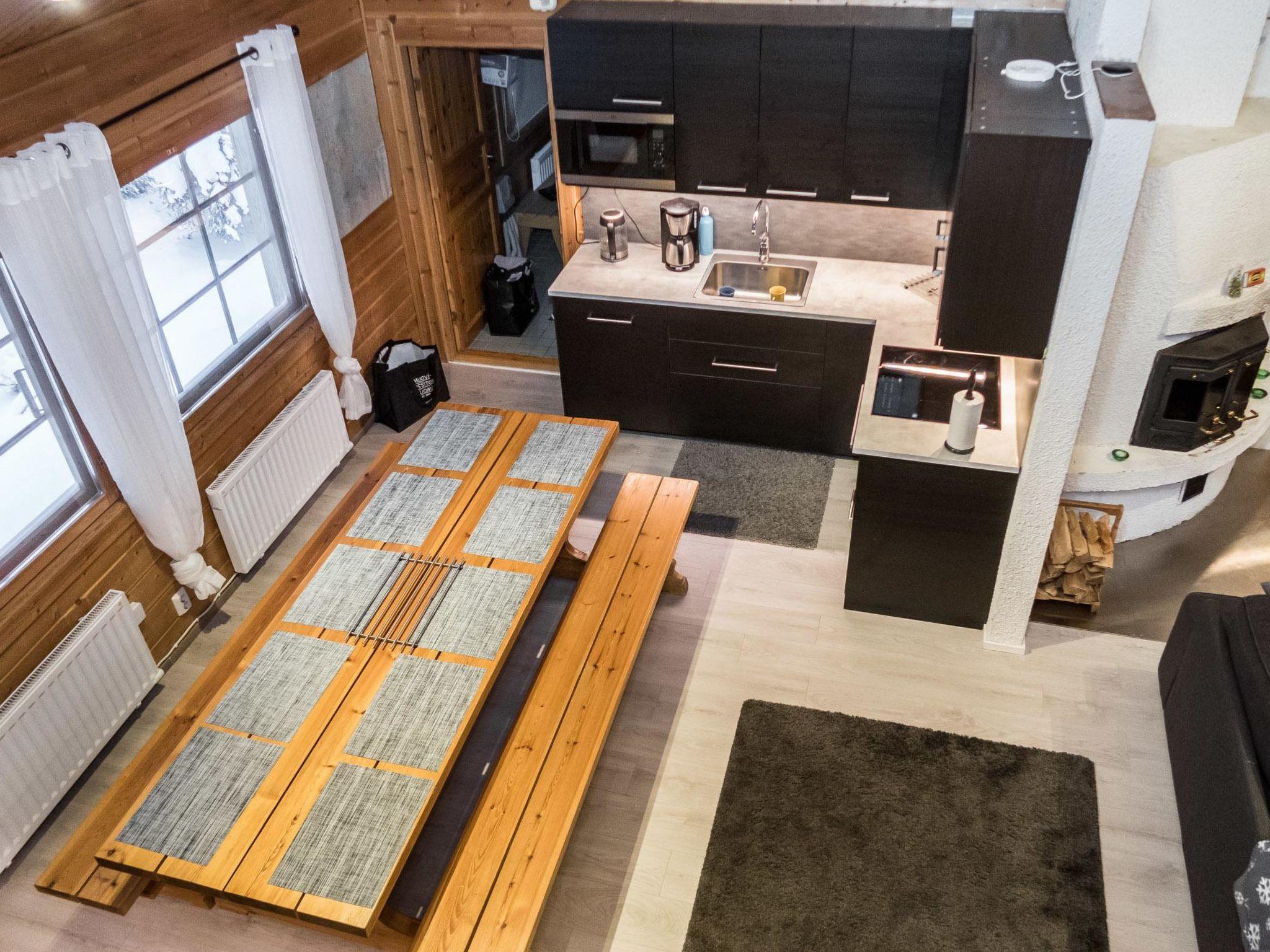 Master bedroom with 180 cm wide double bed, bedrooms 2-4: 2 beds in each, loft (28 m², low room height): 6 high quality Tempur-mattresses, steep stairs to loft, combined kitchen/living room, electric sauna.