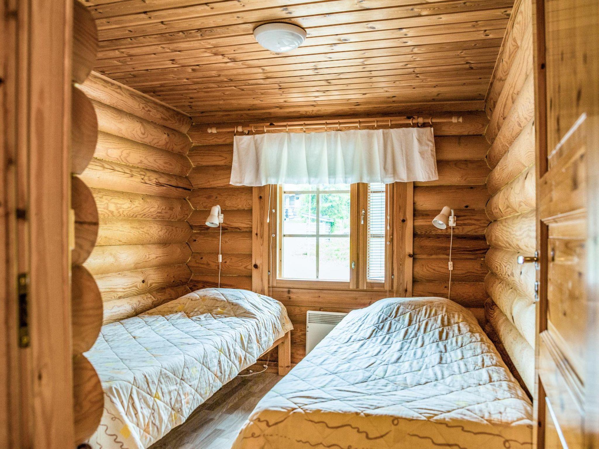 25 km north of Kuusamo, Vuosseli (Eastern Ruka) 700m. Apartment in log-built semi-detached house, built in 2001, combined kitchen/living room (spreadable sofa), bedroom 1: 2 beds, bedroom 2: 2 beds, loft (20 m², sloping ceilings, low room height): 4 mattresses, gentle stairs to loft, child safety gate at the top of the stairs, electric sauna.