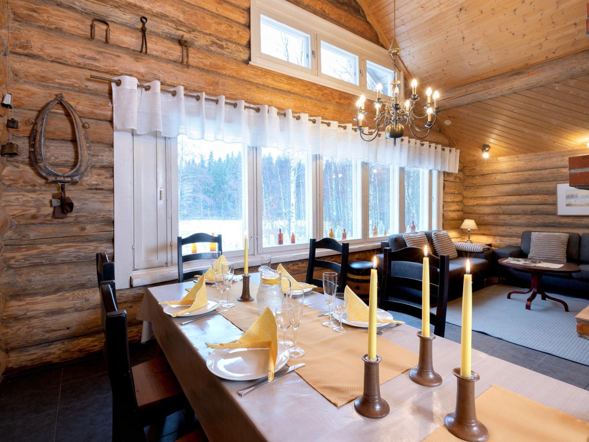 Log cabin of 2010, lounge, bedroom with double bed, living room, kitchen, sauna (electric "Always ready" stove), a second sauna (wood stove), washroom with three showers, toilet, terrace.