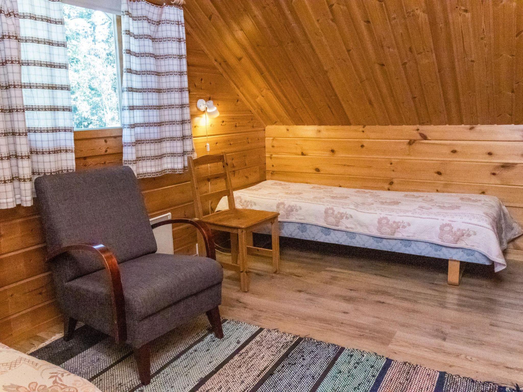 Log cabin 1999, living room/kitchen, downstairs: bedroom 2 beds, in upper floor bedroom 2+1 beds, bedrooms with 2 beds, Child safety gate downstairs and upstairs, washroom, sauna (electric sauna stove), terrace.