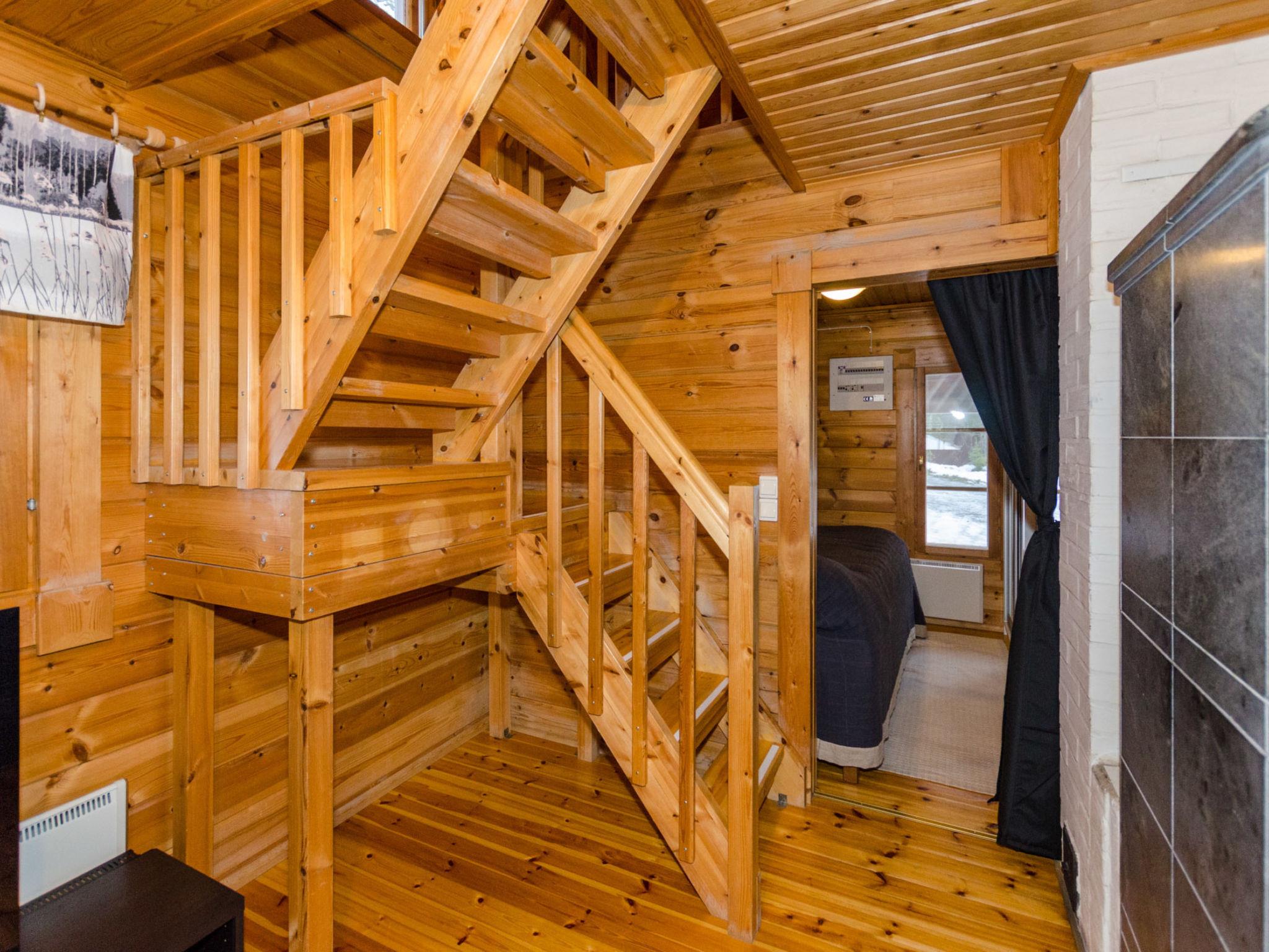 Log building 1999, living room with sofa, kitchenette, sleeping alcove with a double bed separated by a curtain, loft with 2 beds and 120 cm wide bed, washroom.