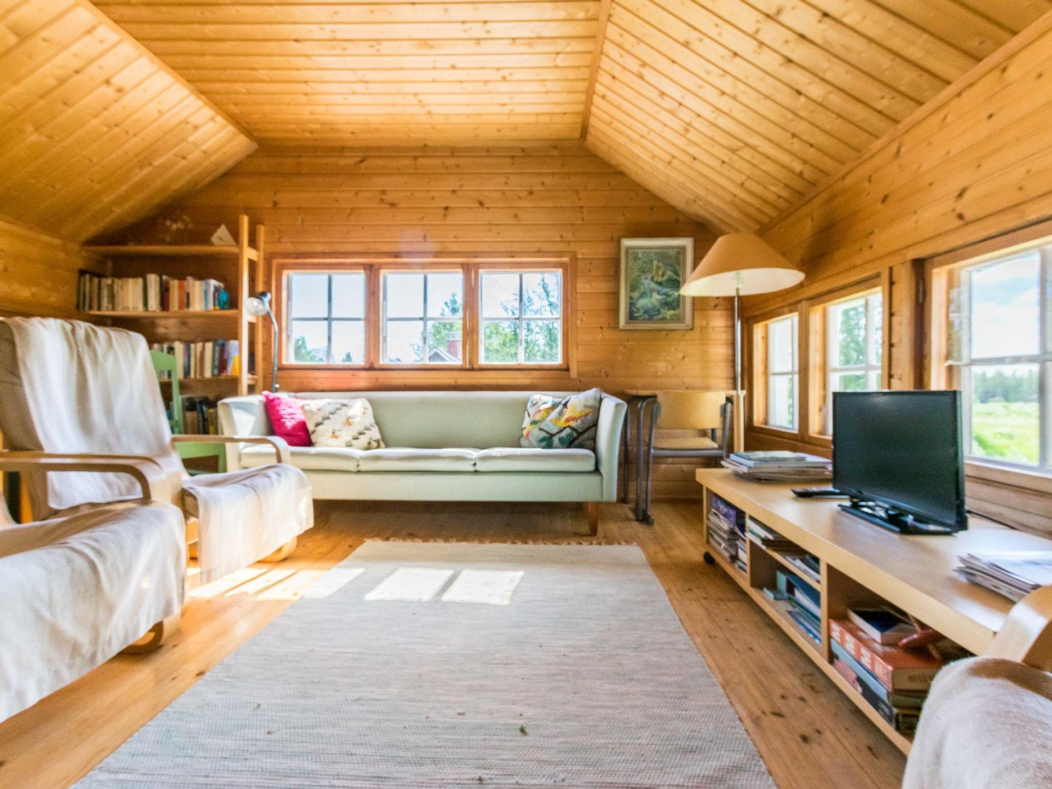 The main building is log-built from 1901, renovated in 1995. In the living room, there are 2 additional beds, a TV room, and in the bedroom, 2 beds. On the upper floor (steep stairs) there is a bedroom with 2 beds, 2 small bedrooms (partly low ceiling), each with 2 beds. Living room, kitchen, and shower on both, ground and upper floors.