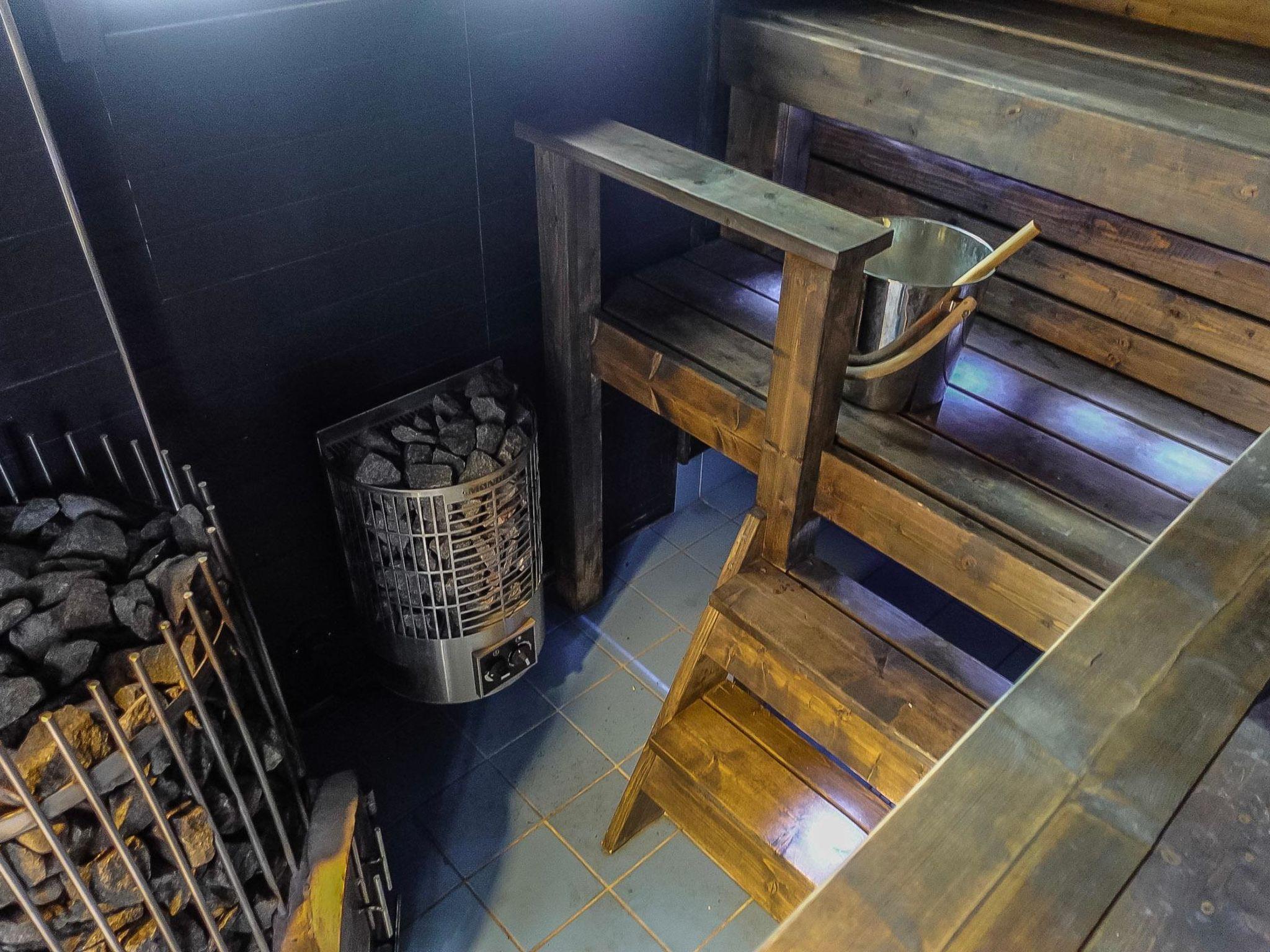 Sauna has both wood and electric stove, semi-warm, glazed veranda, separate toilet and partly covered terrace.