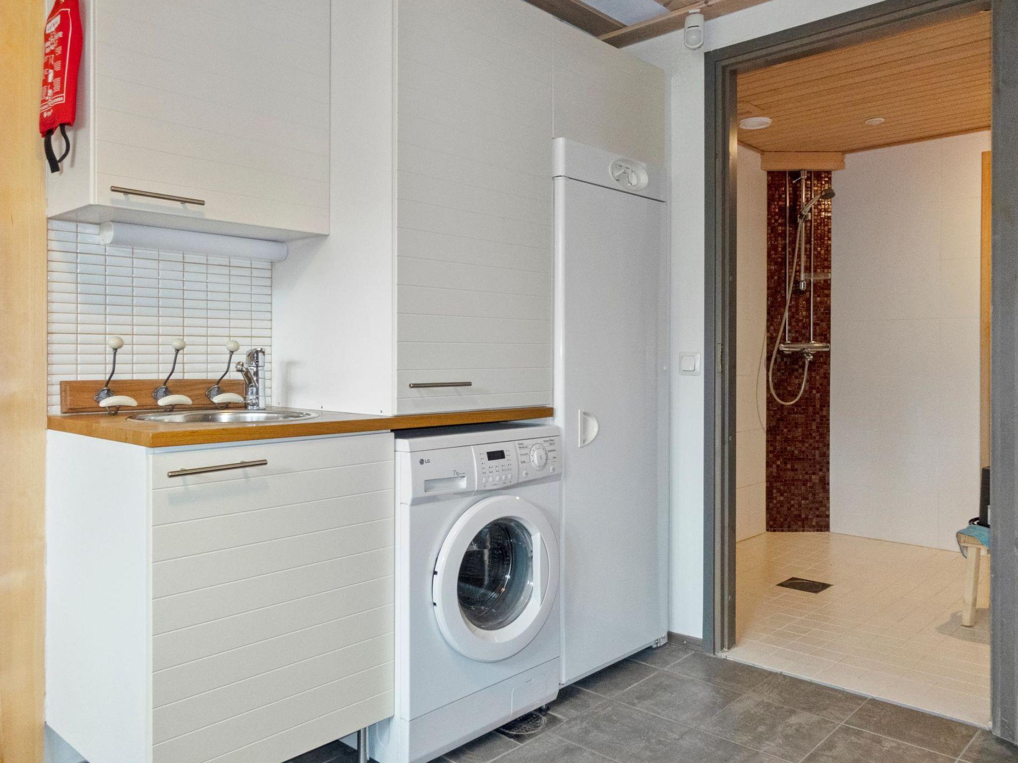 On the ground floor there is sauna, washroom, sauna room/utility room, spreadable sofa in sauna room and separate WC. In addition, spacious sleeping area with double bed. The sleeping area has no windows.