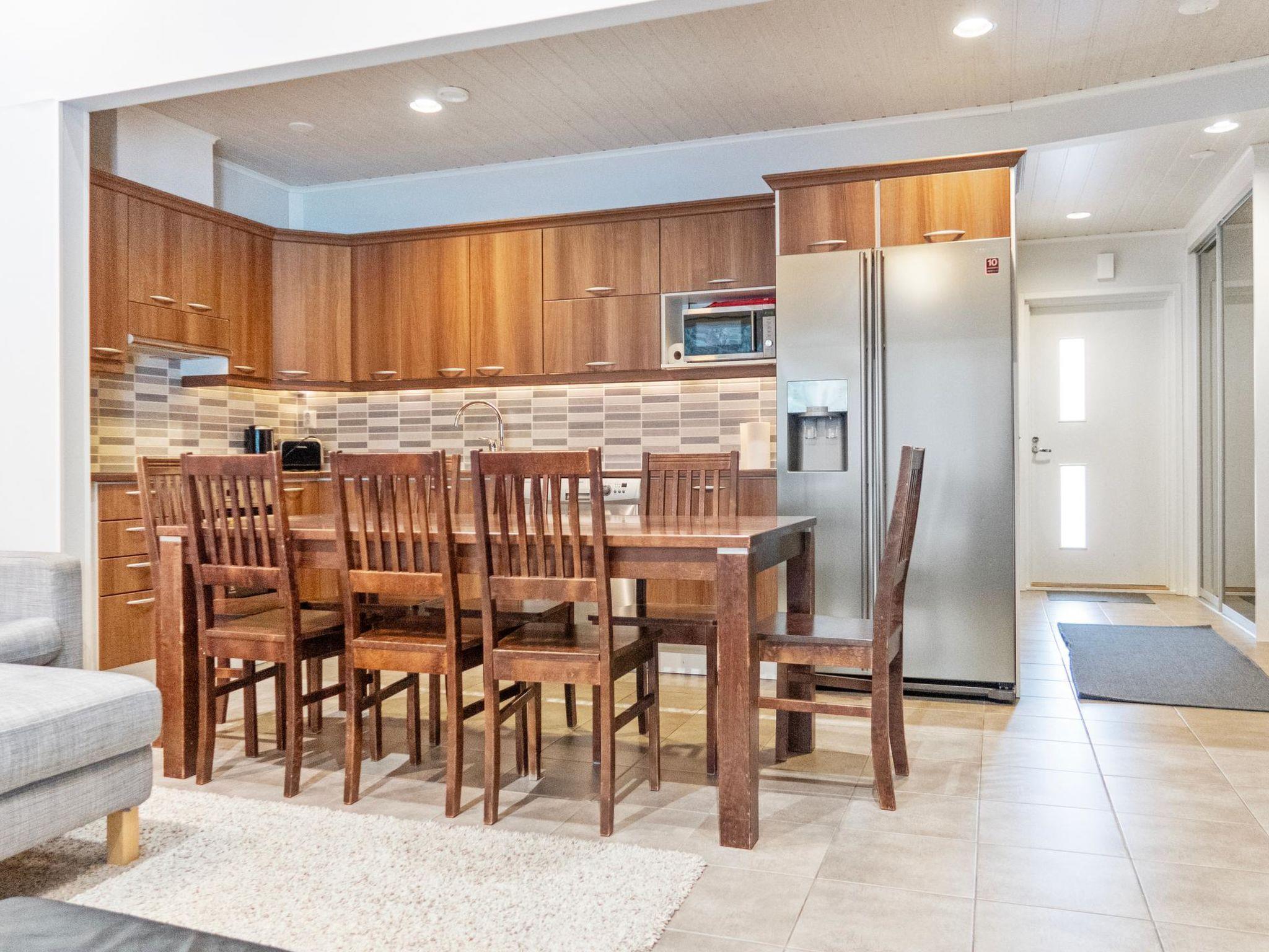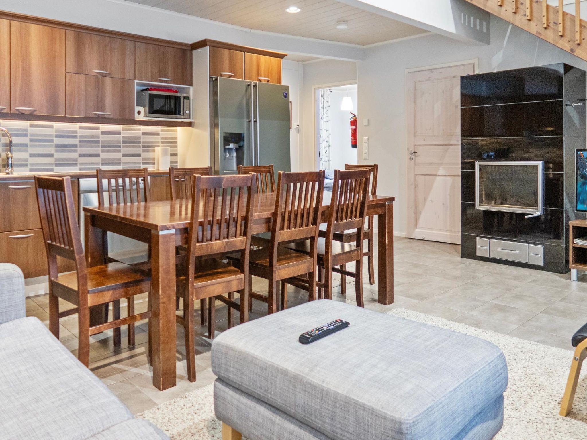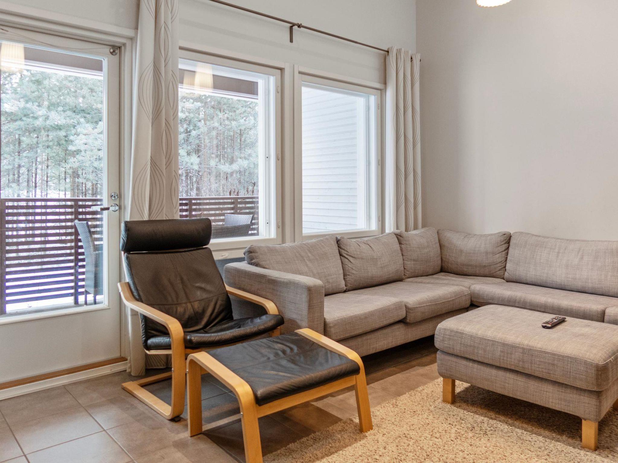 This luxury semi-detached house was completed in March 2013. Located near the Vuokatti skislopes. Floor area 97m². On the ground floor there is living room, kitchen, 2 bedrooms, sauna (electric heating), washroom / shower with a hydro massage bath, and toilet and separate toilet. Upstairs: 2 bedrooms and toilet. Terrace. Internet connection (wireless 1Mb).