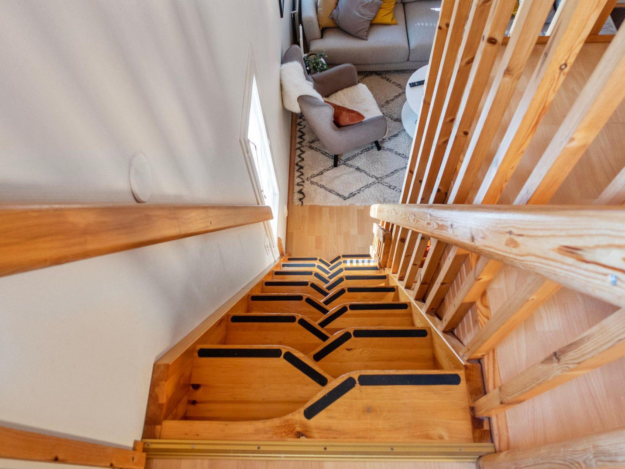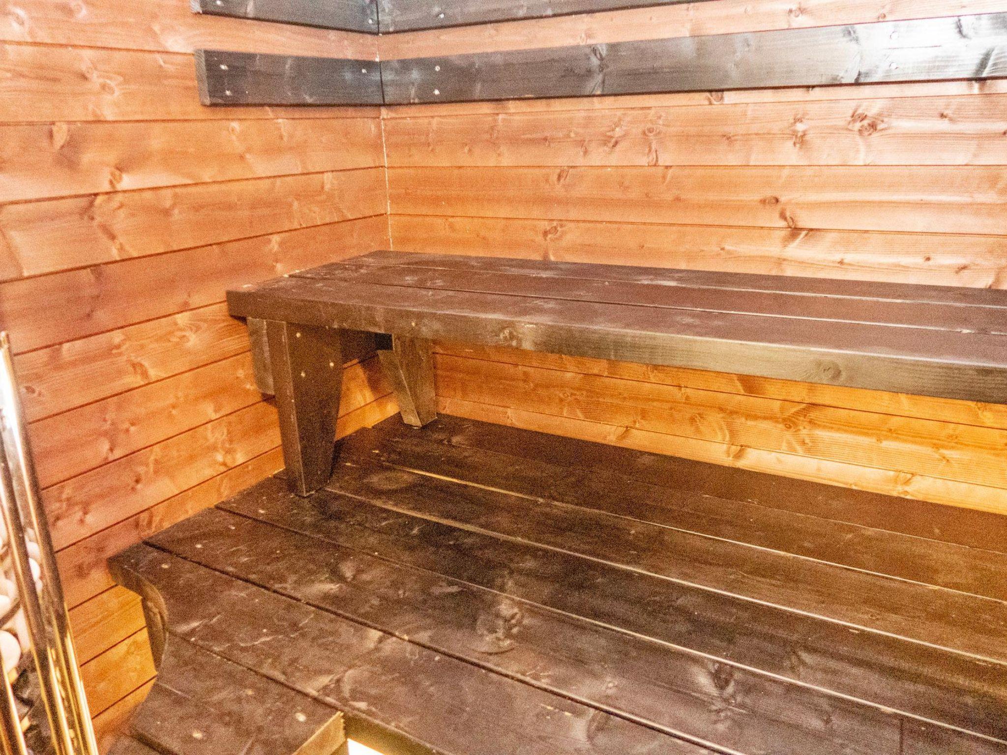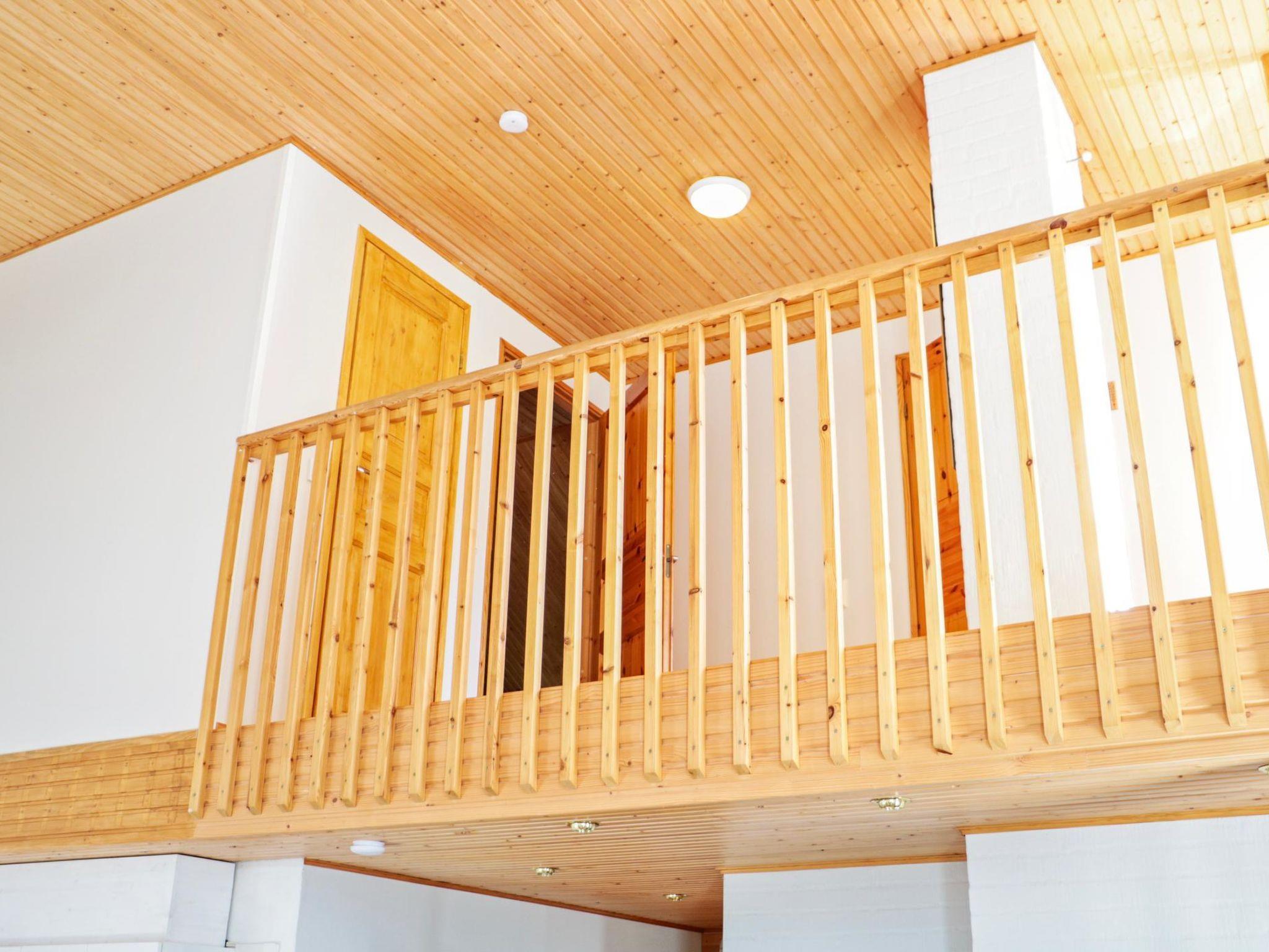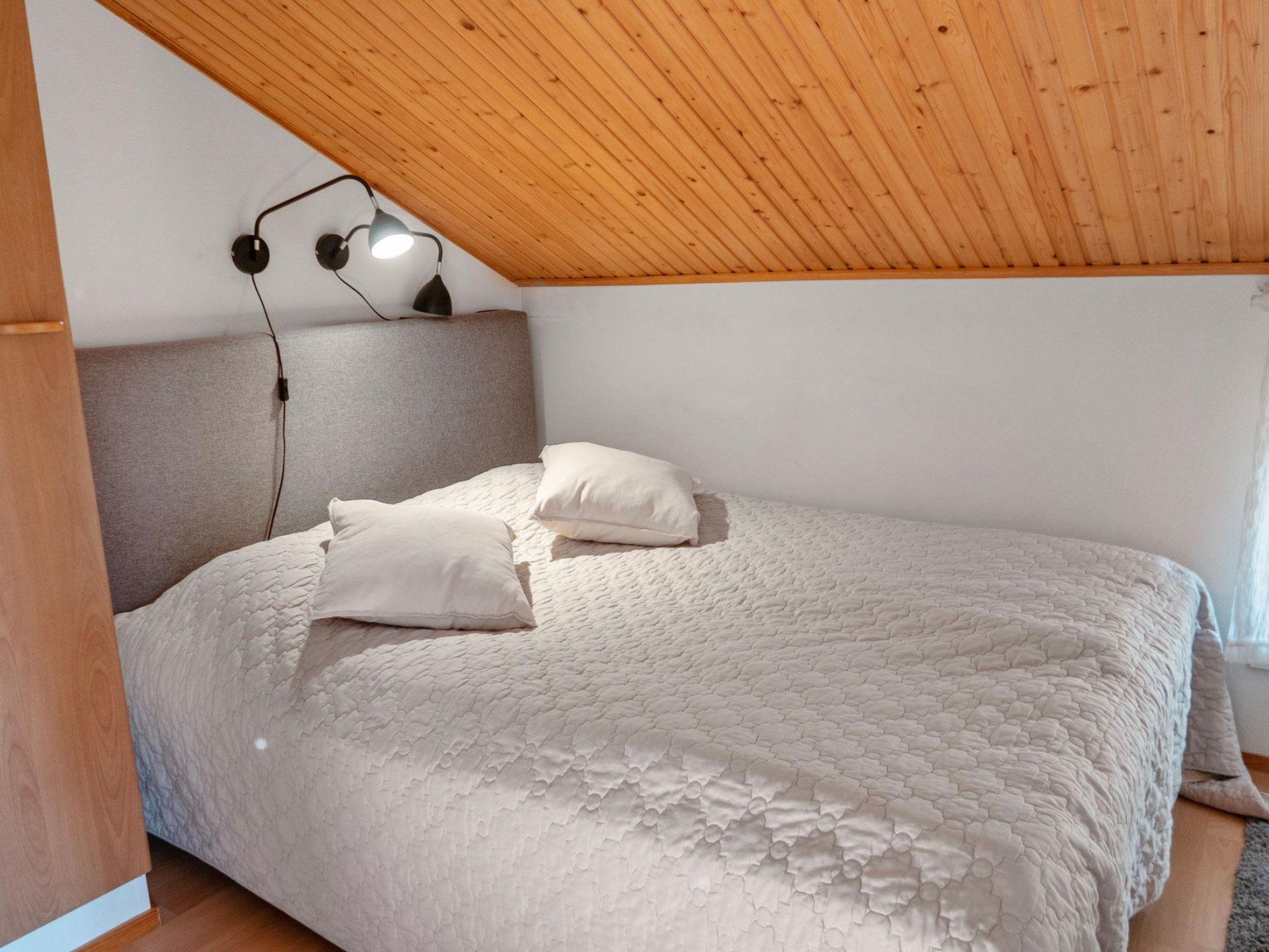 Living area is 75 m², loft 15 m². On the ground floor there is combined living room & kitchen and one bedroom with twin bed. Upstairs there is loft, two bedrooms, one with separate beds for two, and one twin bed and separate toilet. Sauna (electric heating), washroom, shower and toilet. Storage for a skis.