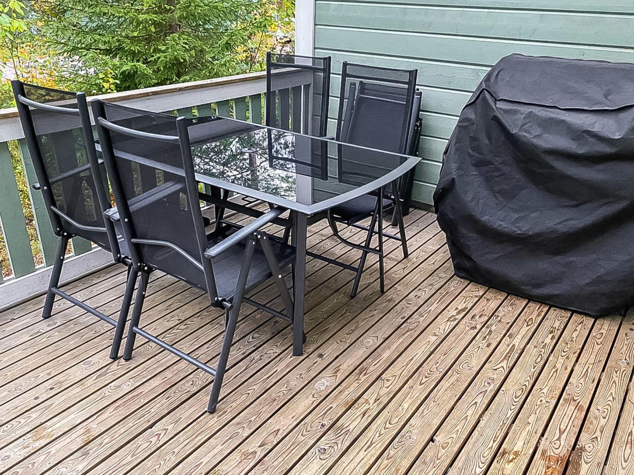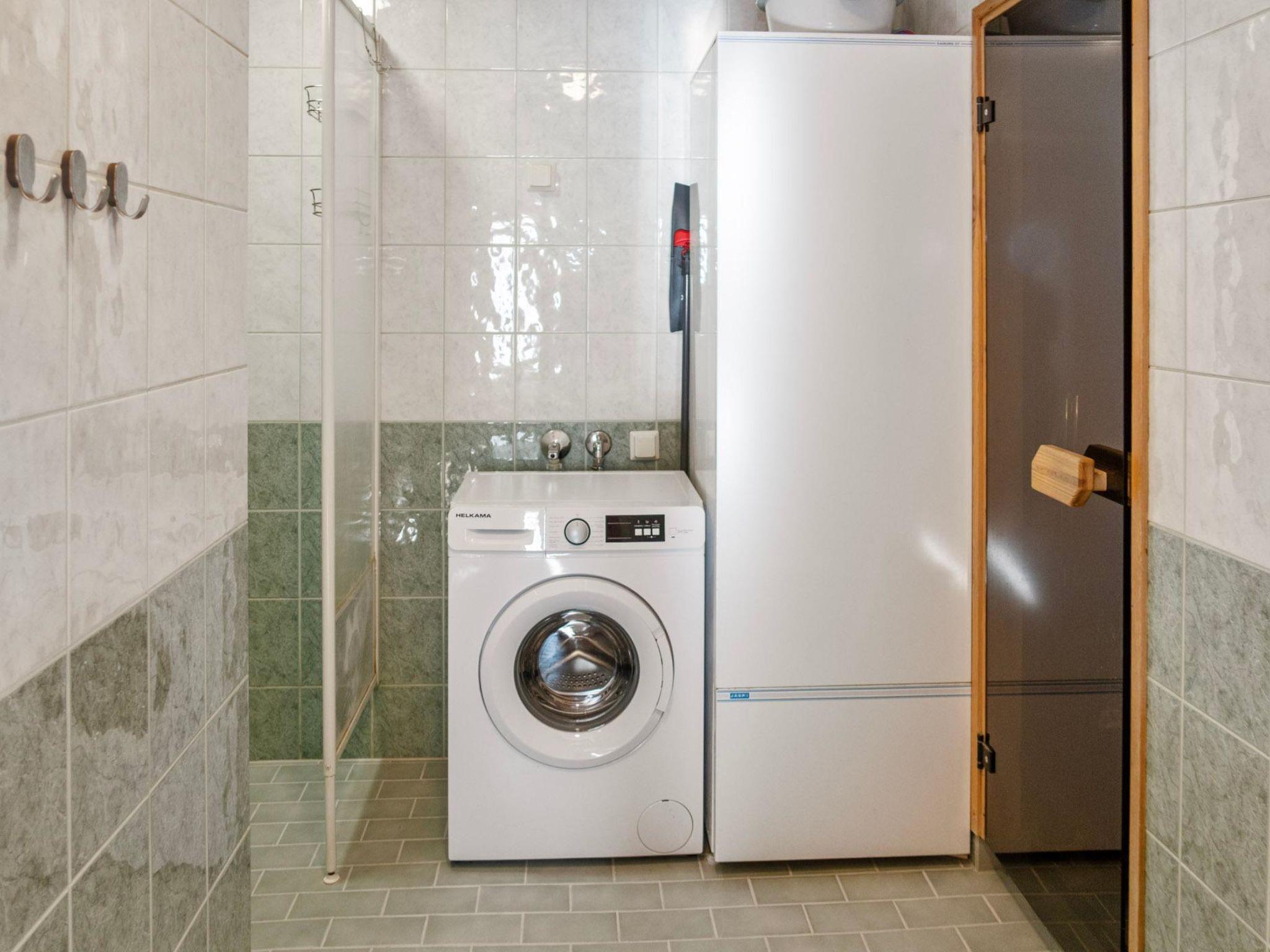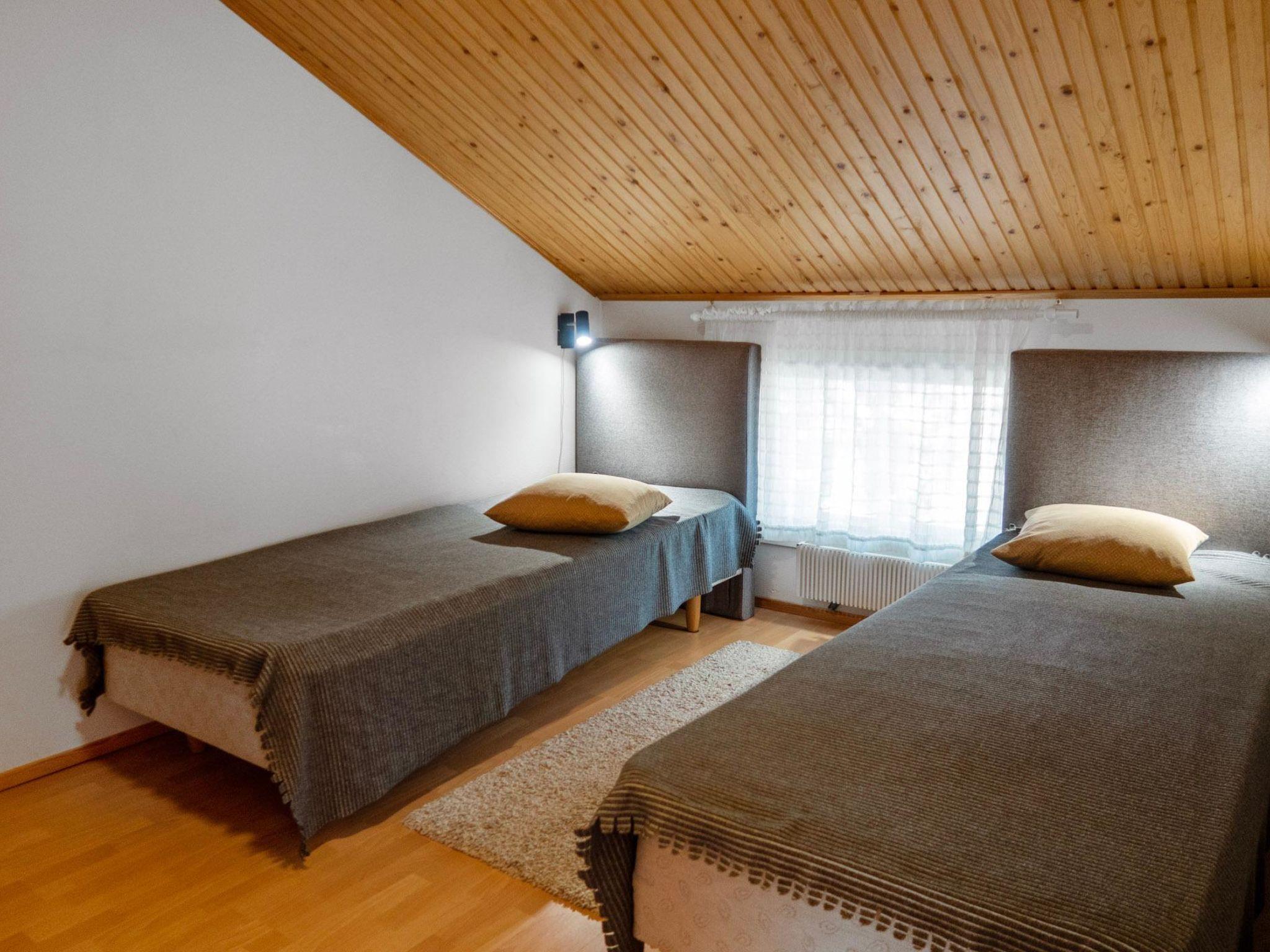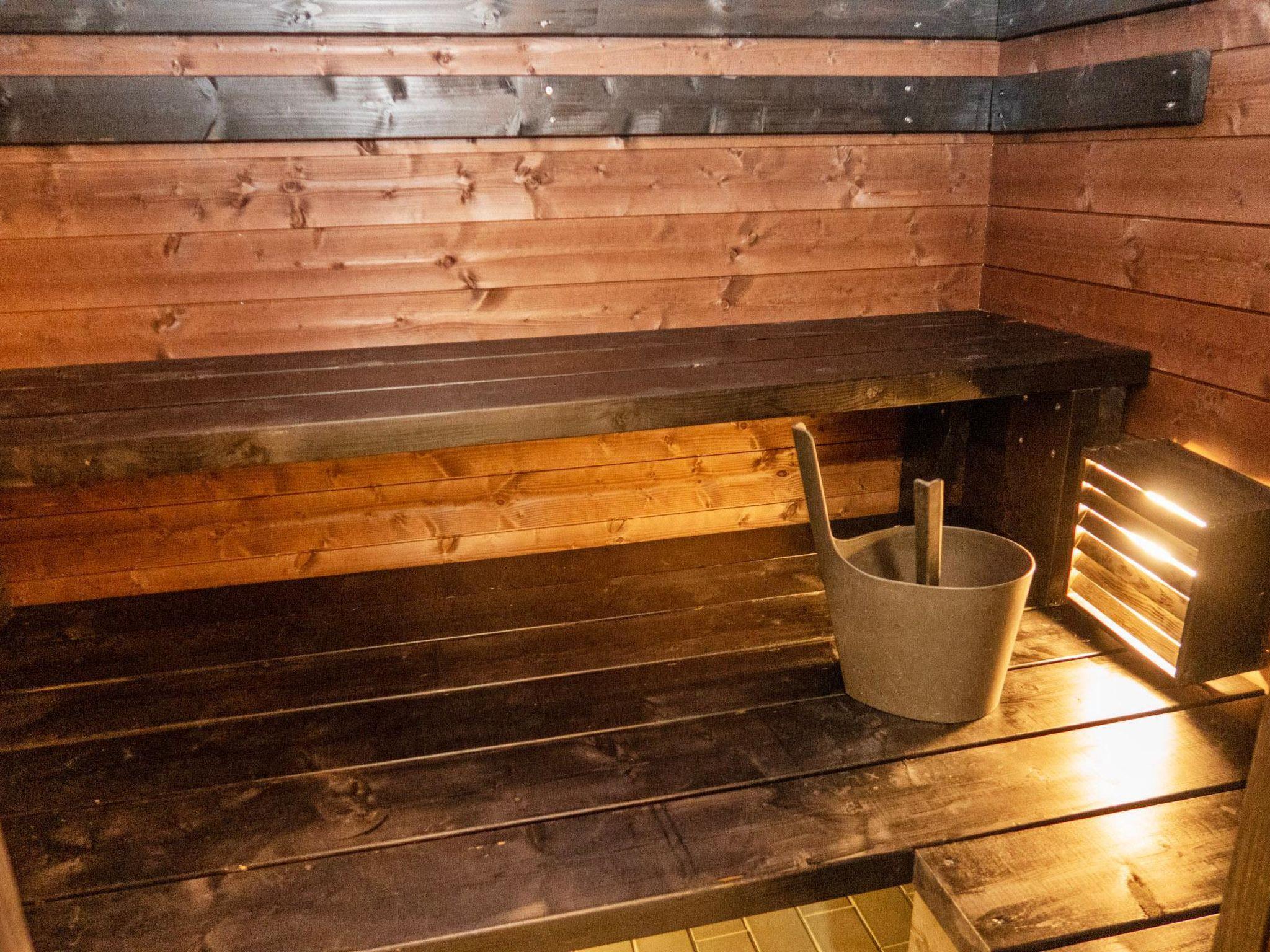 Living area is 75 m², loft 15 m². On the ground floor there is combined living room & kitchen and one bedroom with twin bed. Upstairs there is loft, two bedrooms, one with separate beds for two, and one twin bed and separate toilet. Sauna (electric heating), washroom, shower and toilet. Storage for a skis.