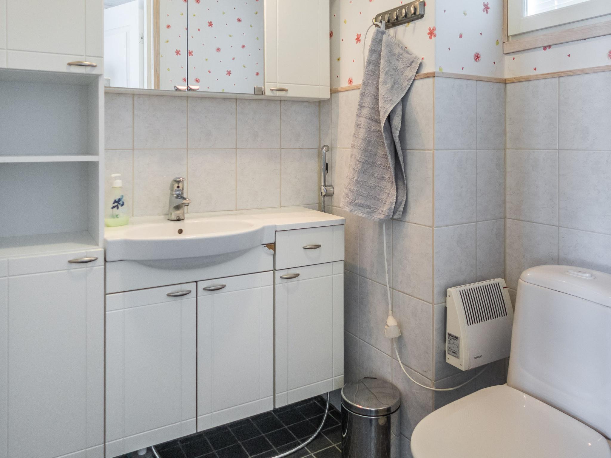 The area of ??the cottage is 110 m² on three floors. On the middle floor there is a spacious kitchen / living room, separate toilet and bedroom with a double bed (160 cm). Normal stairs to the loft (the loft is low, max 160 cm), with 4 separate beds (2 wider and 2 x 80 cm). On the entrance floor there is a hallway, utility room with a sofa bed, a shower, toilet and a sauna with an electric heater. In addition, there is access to a storage / maintenance room.