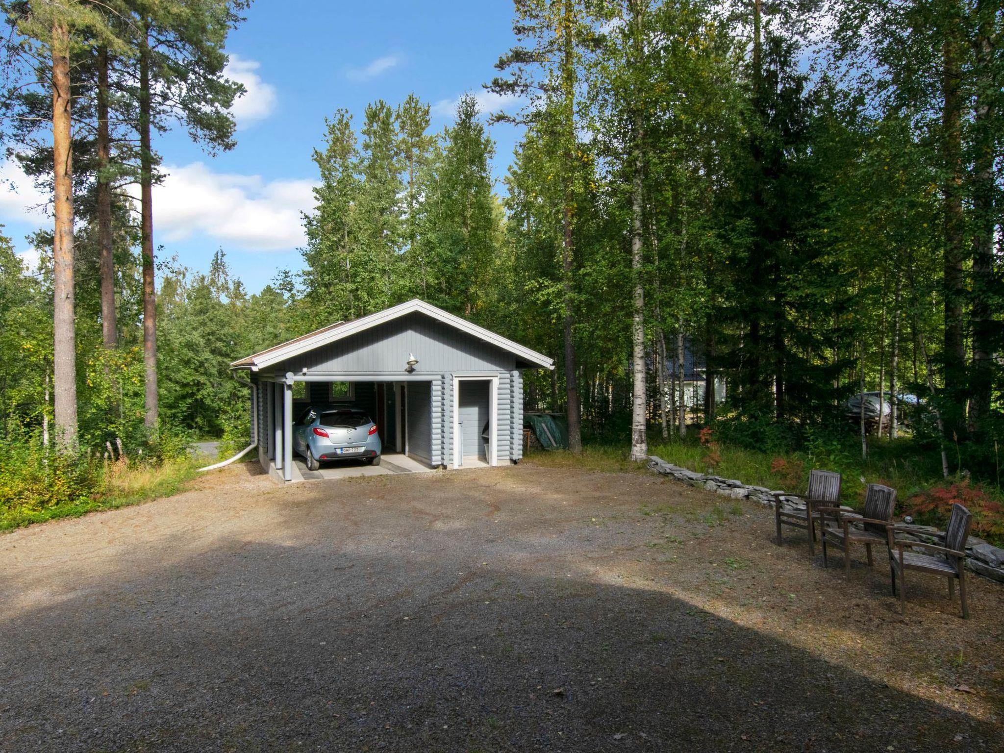 Outdoor builting is a car shelter and storage for a skies and wood.