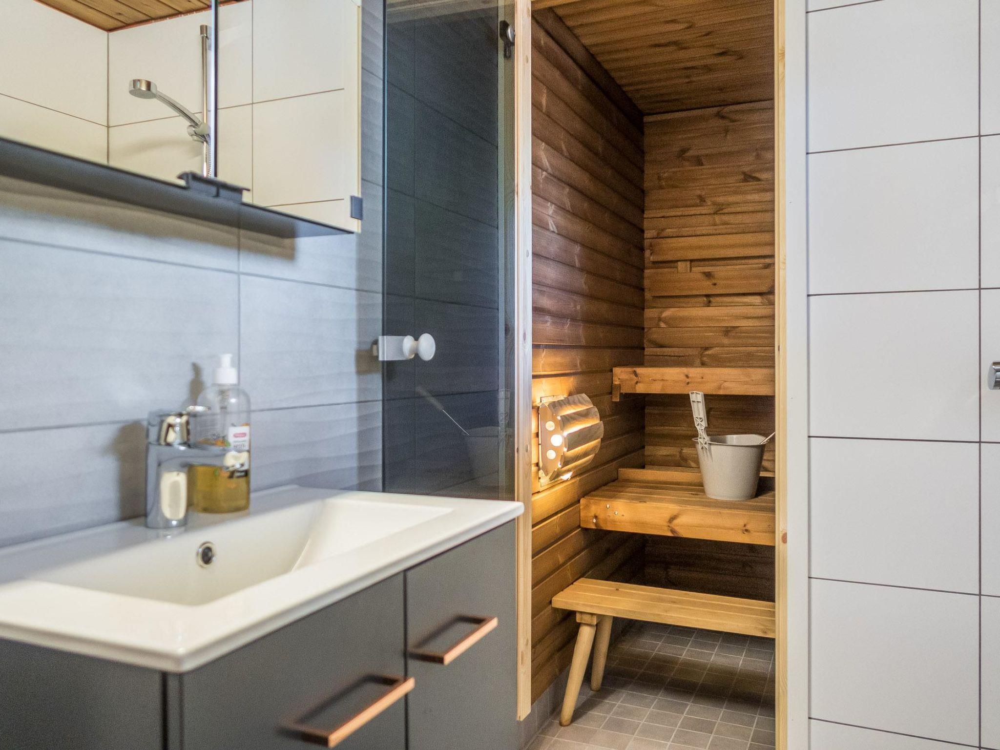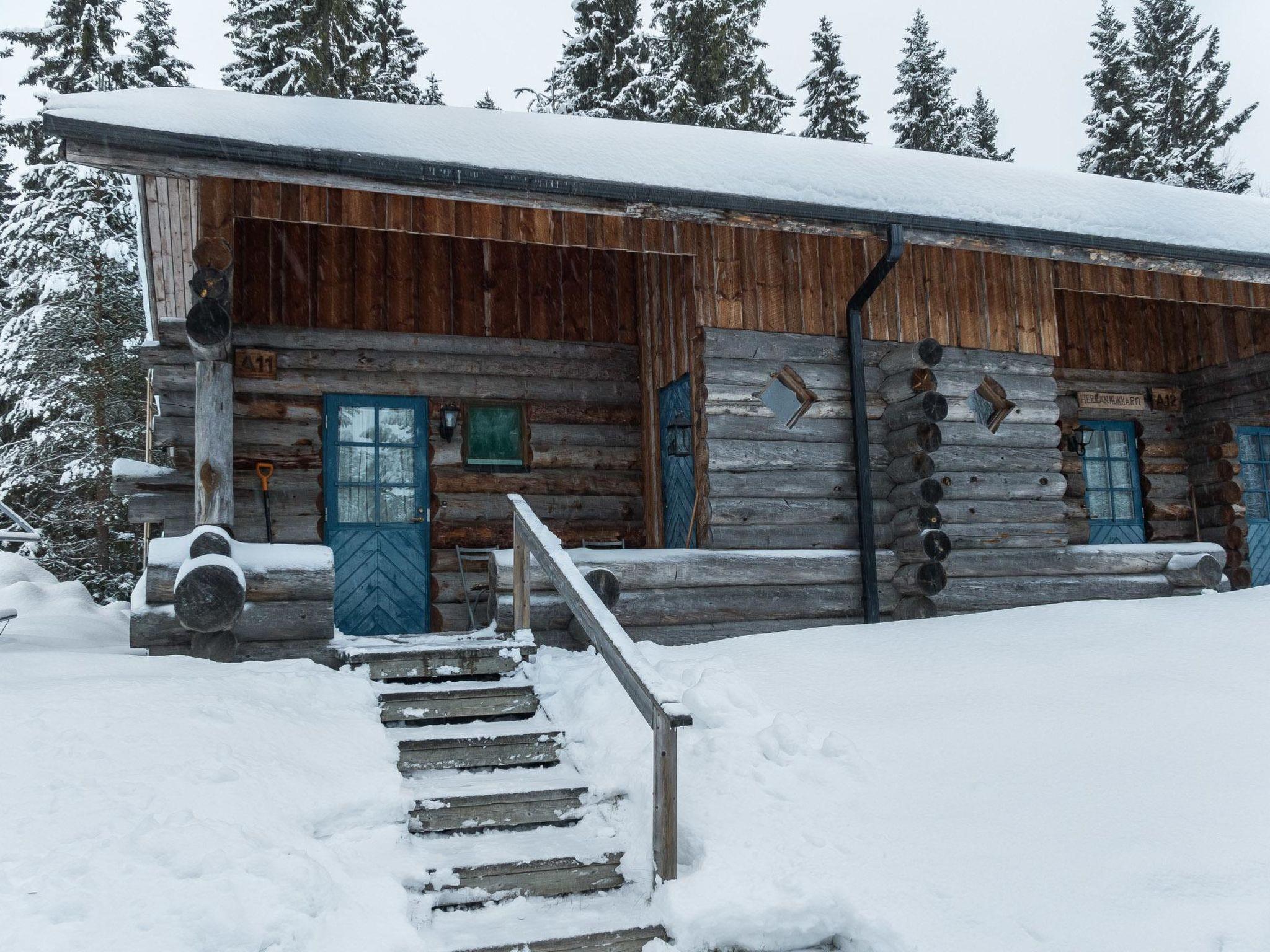 This log row house apartment is located in Vuokatti ski centre. Floor area 48 m², loft 15 m². Combined living room & kitchen. Loft (steep stairs) with 2 beds and double bed (divided with wall) and one movable extra bed. Sauna (electric heating), washroom and toilet.