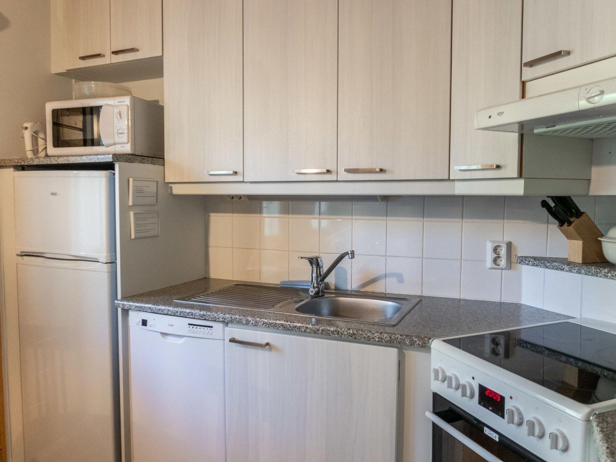 This apartment in semi-detached house located in Vuokatti ski centre was completed in 2001. Floor area 60m², loft 35 m². On the ground floor there is combined living room & kitchen, one bedroom with separate beds for two, sauna (electric heating), washroom and toilet. Upstairs there is loft vestibule with separate beds for four and alcove with 120cm bed. Terrace and babrwque (gas, use only on summer time). Fireplace.