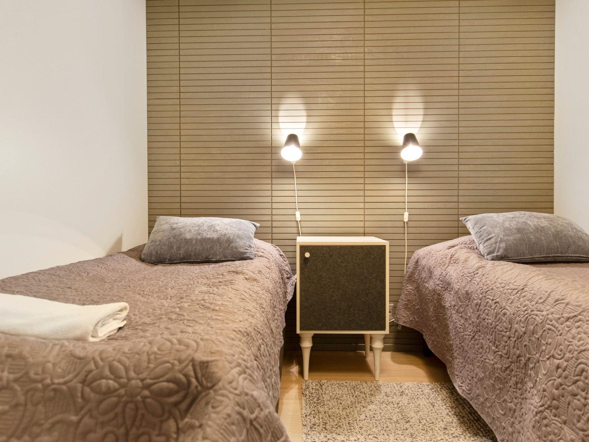 This holiday apartment located in Vuokatti ski centre was completed in 2007. Apartment floor area is 74 m². There is combined living room & kitchen with sofa-bed for 1-2 persons, three bedrooms: 1st with twinbed (180cm) and 2nd with two separate beds (90cm). Sauna (electric heating), washroom/toilet and separate toilet. Balcony with terrace furniture and barbeque (gas) on summer time.