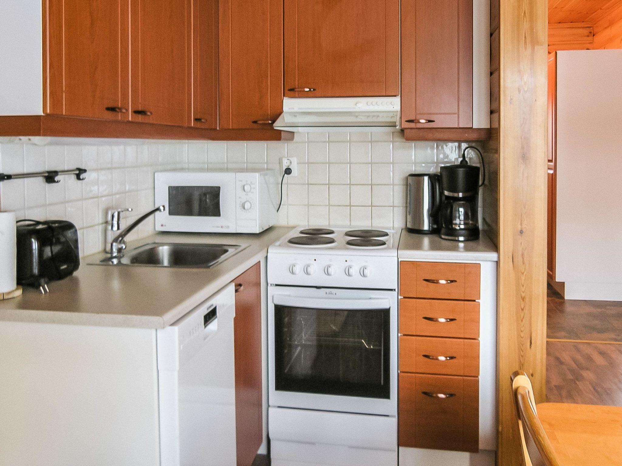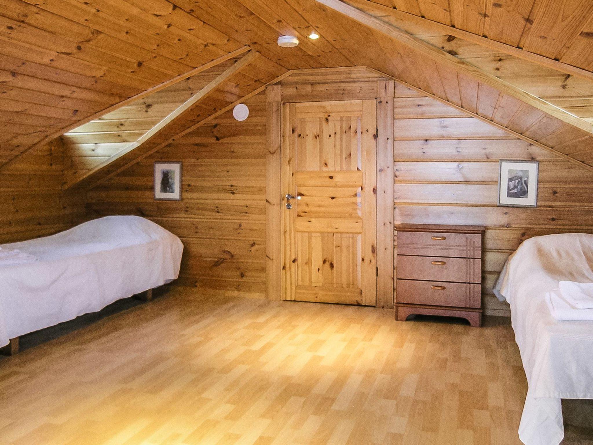 This apartment in log semi-detached house located in Vuokatti ski centre was completed in 2002. Combined living room & kitchen, two bedrooms, one with twin bed, the other with separate beds for two, sauna (electric heating), washroom and two toilets. Loft with 2 beds and 2 folding extra beds. Wi-fi by the request and in advance, straight from the cottage owner (signal not very well).