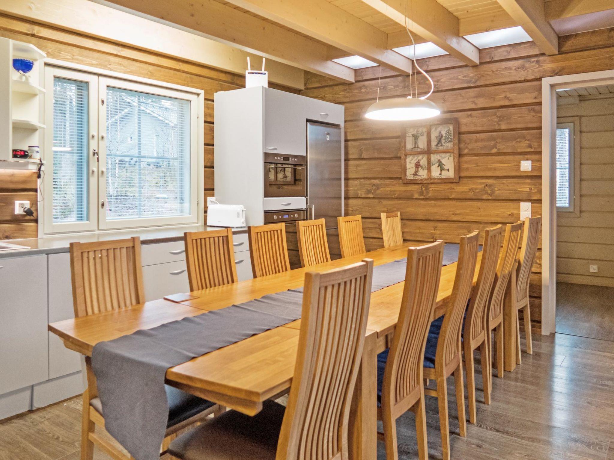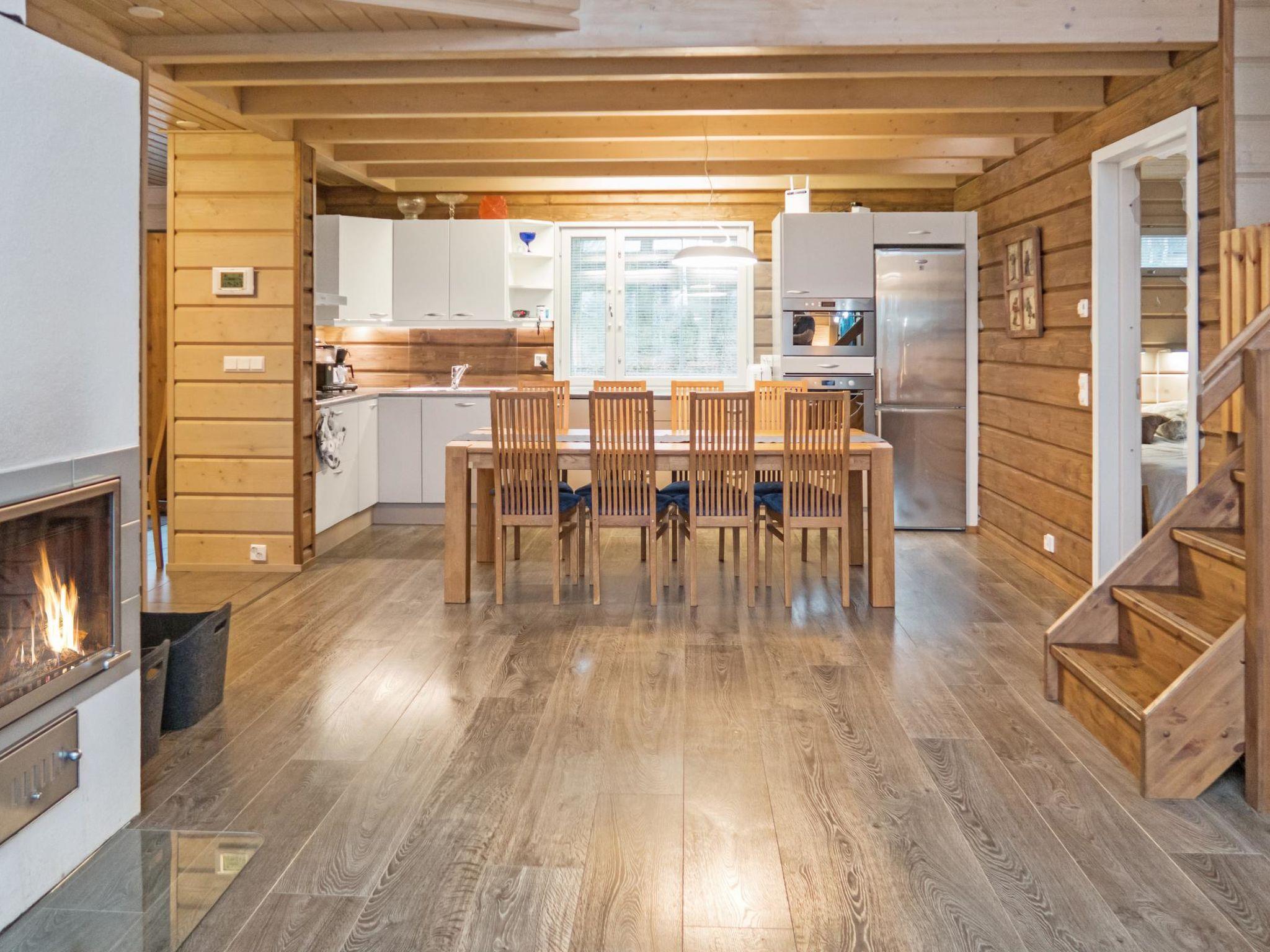 This separate apartment in silent place in Vuokatti was completed in 2013. Living area 135m². The detached house, recently furnished with new furniture, has everything even a large group needs for a relaxing holiday: a spacious, unified living room and kitchen, a sauna (always ready electric heater), a large washroom with two showers and a whirlpool tub, and in addition to the four bedrooms, there are two sleeping areas separated by curtains in the upper hall. The cottage has two terraces: a refreshing terrace next to the dressing room and a larger terrace next to the living room, where you can find a dining group and a gas grill.