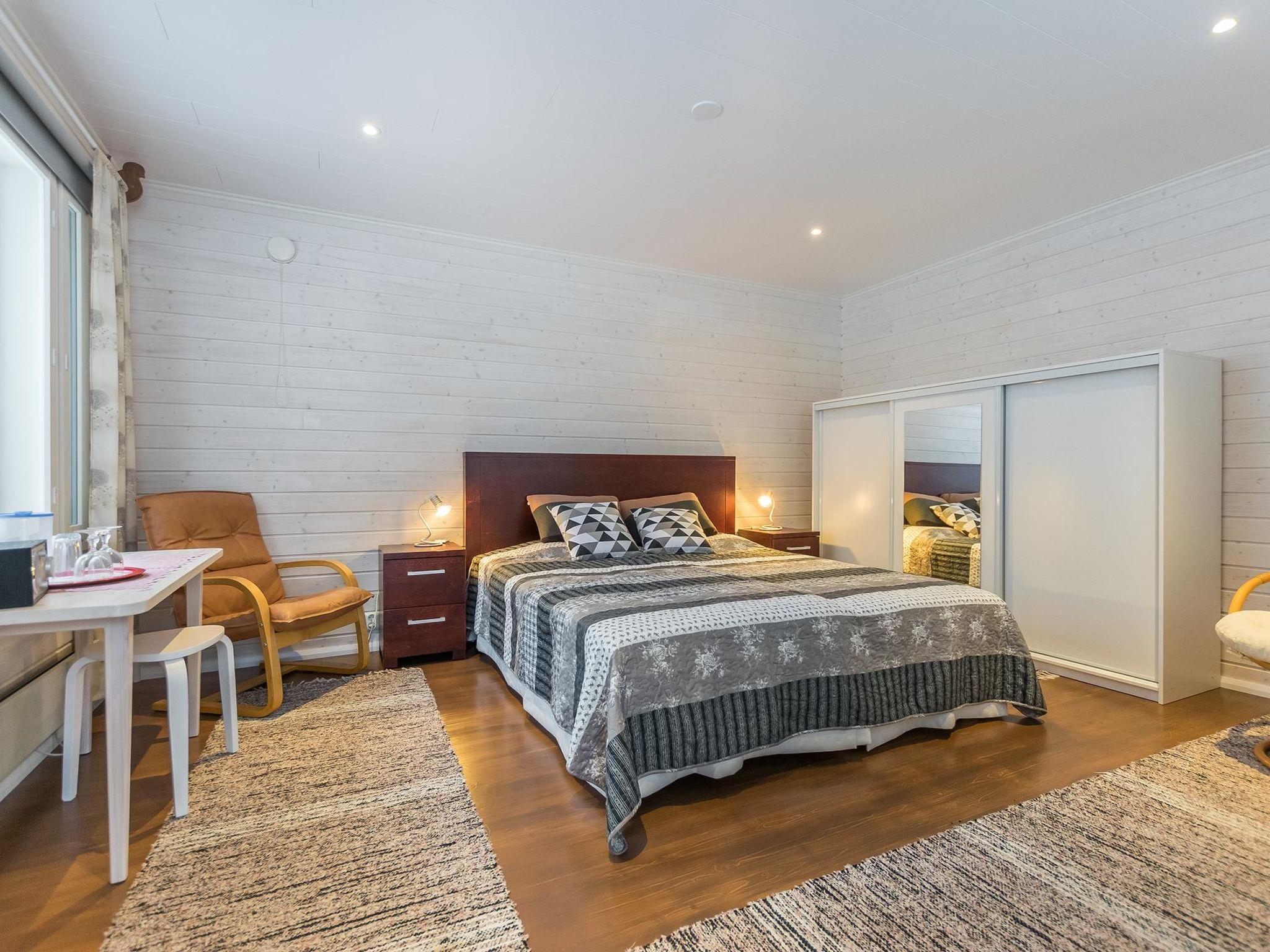 29 km to the northeast from Puumala, lake Saimaa 20 m, shallow sand beach, own pier and rowing boat, wooden cabin with boarded outer walls (built in 2000), spacious living room and living room/kitchen, two bedrooms (both with double bed), WC, sauna (wood-burning sauna stove), washroom, dressing room. In the yard there is a spacious sleeping shed (built in 2021), the shed has 2 beds, electricity and heating. Air source heat pump in the cabin. 2 refrigerators, one with freezer compartment.