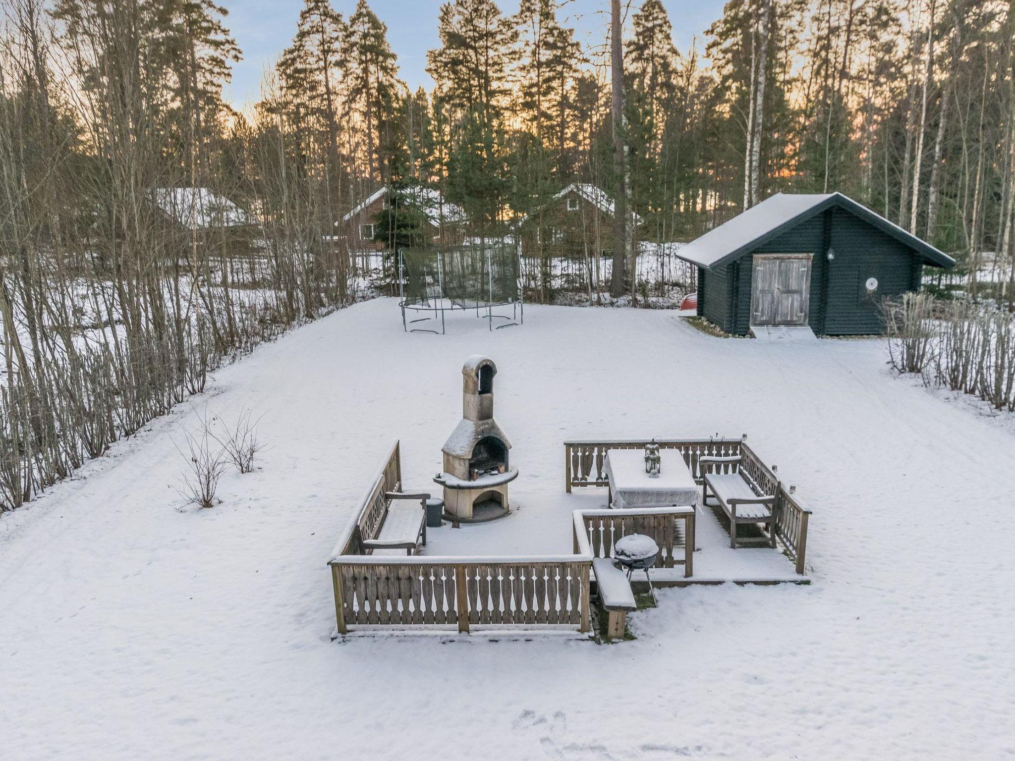 The yard includes a barbecue area. There is a trampoline (with a safety net) for children, shared between Kaivoskartano and Kultakartano, located at the corner of the Kaivoskartano plot; use is at your own risk. The holiday village area also offers a tennis court, beach volleyball court, and mini-golf course.