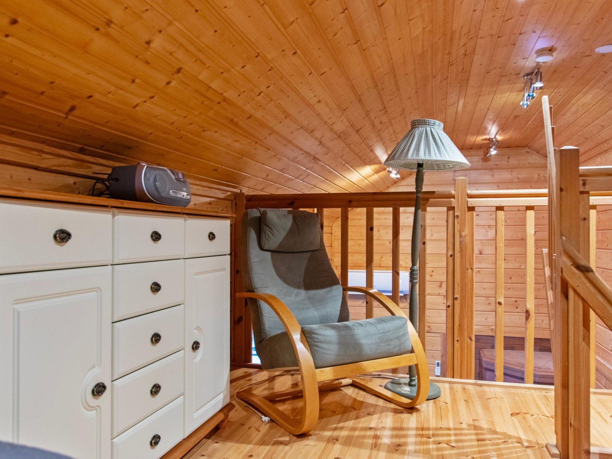The sauna is equipped with a wood-burning stove, and the washroom includes a shower and a WC. In the yard, there is an atmospheric grill hut, and the terrace also has a gas grill. Steep stairs lead from the cabin down to the shore. The shallow shoreline has a sandy bottom. There is about 1 meter of water depth at the end of the pier.