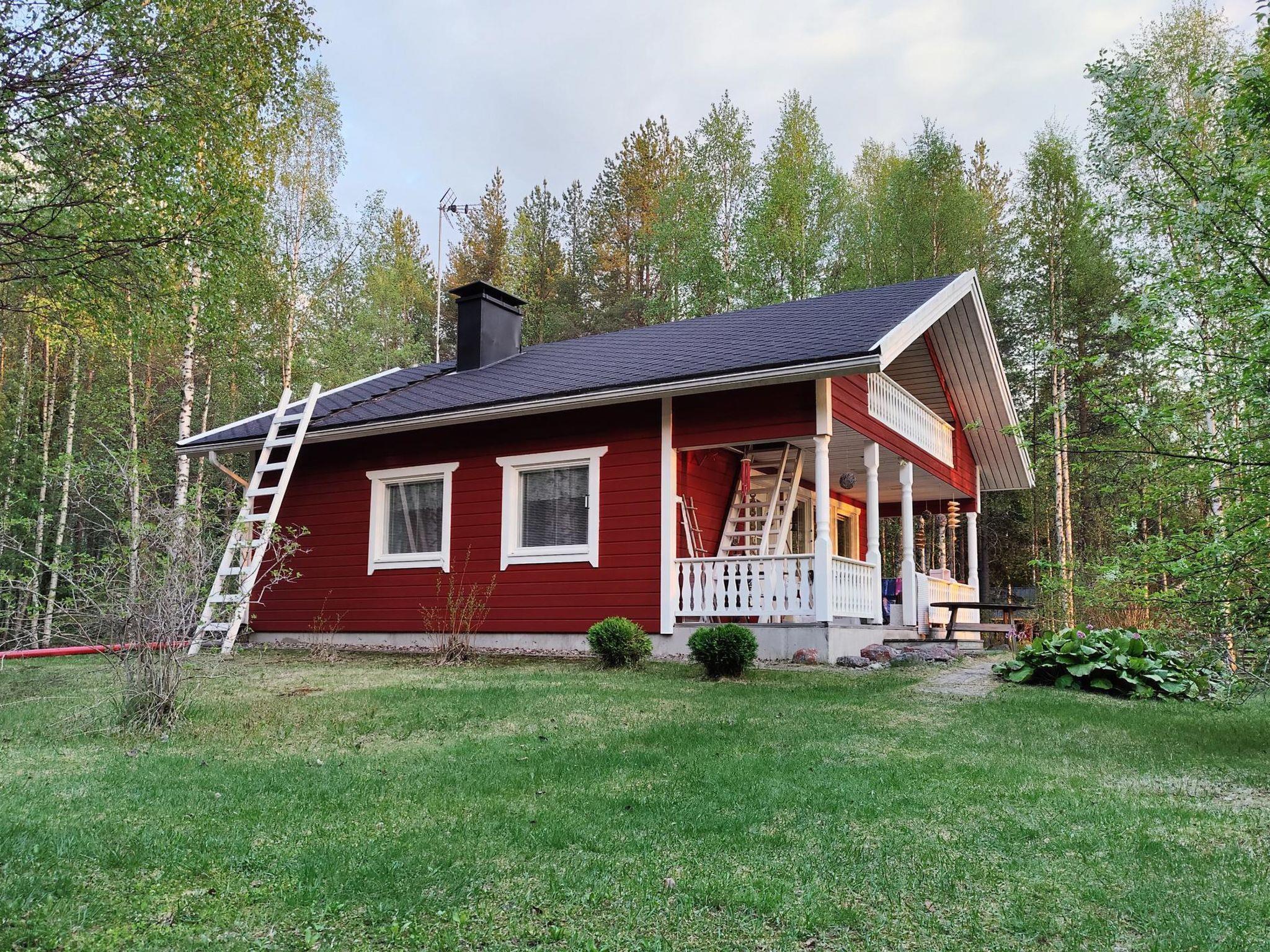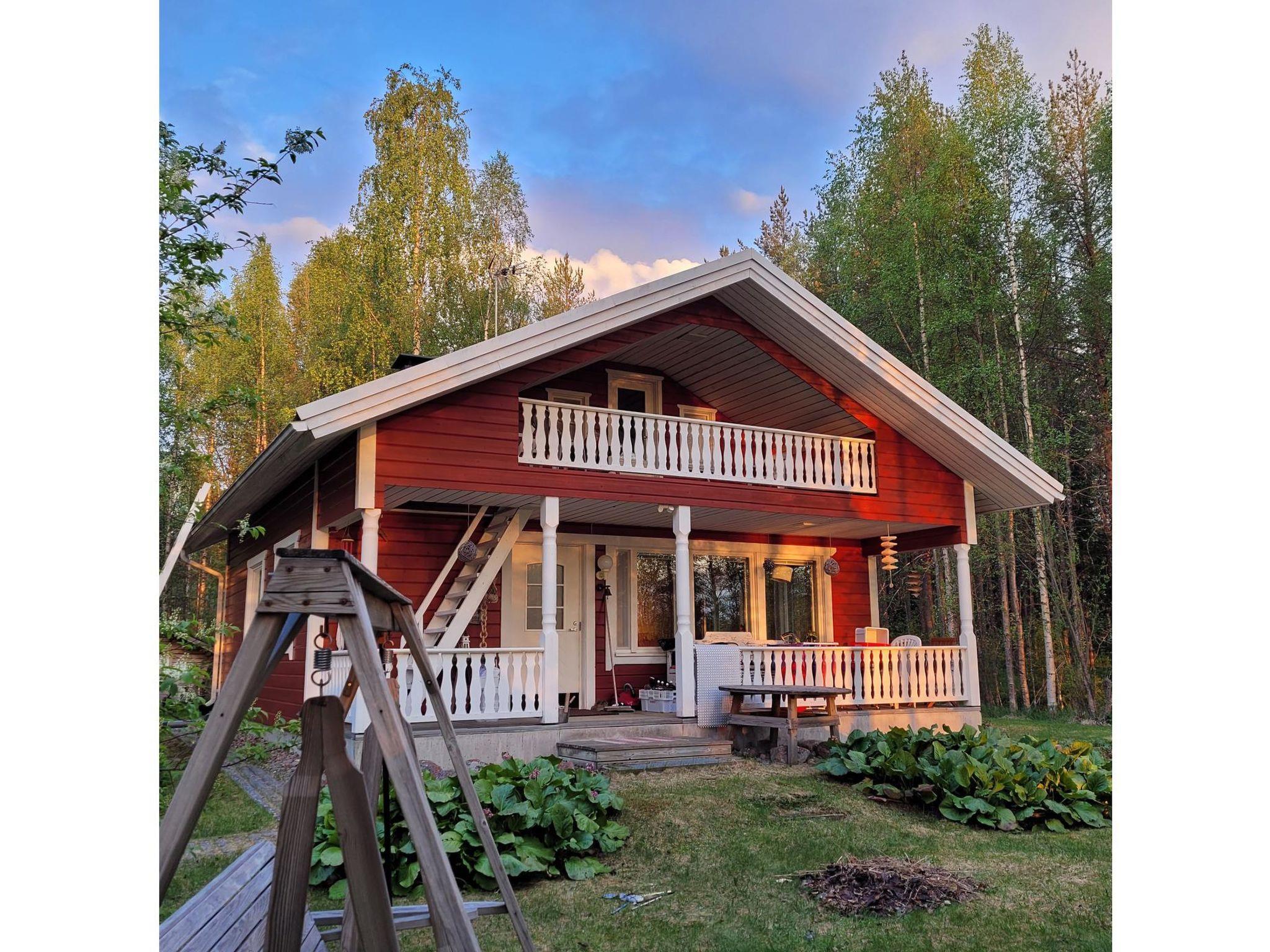 Cabin on a lawn plot by the big lake, nice bitch trees are also growing on the plot. Wood-heated lakeside sauna. Located on the border of Rovaniemi and Pello, a short distance to both.