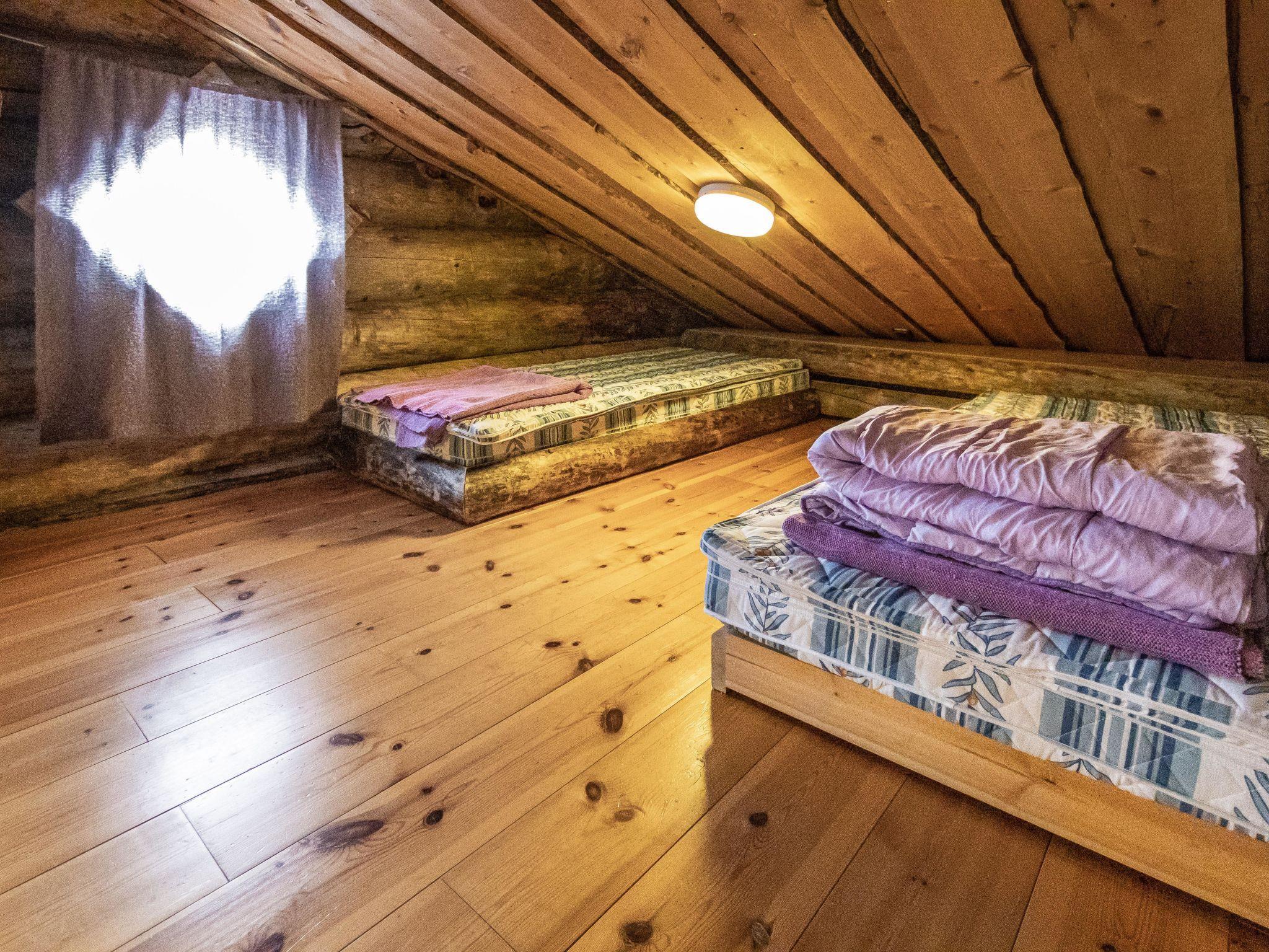 40 km North-East of Kolari, lake Ylläsjärvi 3 km, swimming beach 4 km. Log cottage, built 1990. Livingroom/kitchen, two bedrooms with 2 separate beds, one bedroom with 1 bed (120 x 200 cm), loft (40 m², sloping ceilings, highest point under 160 cm) with 6 beds ( 4 beds 80 x 200 cm and 2 beds 120 x 200 cm).Electric sauna, shower/toilet, separate toilet. Please notice that cottage is rented max. 9 people.