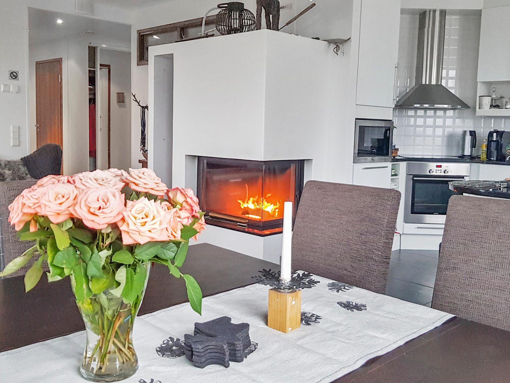 40 km north-east of Kolari, lake Ylläsjärvi 4 km, swimming beach 5,5 km. Appartment in a appartment hotel, built 2008. Livingroom/kitchen, 1 bedroom with a double bed (width 180 cm), 2 bedrooms each with two separate beds, sleeping alcove with bunk bed, electric sauna, washing room/toilet. Tumble dryer.