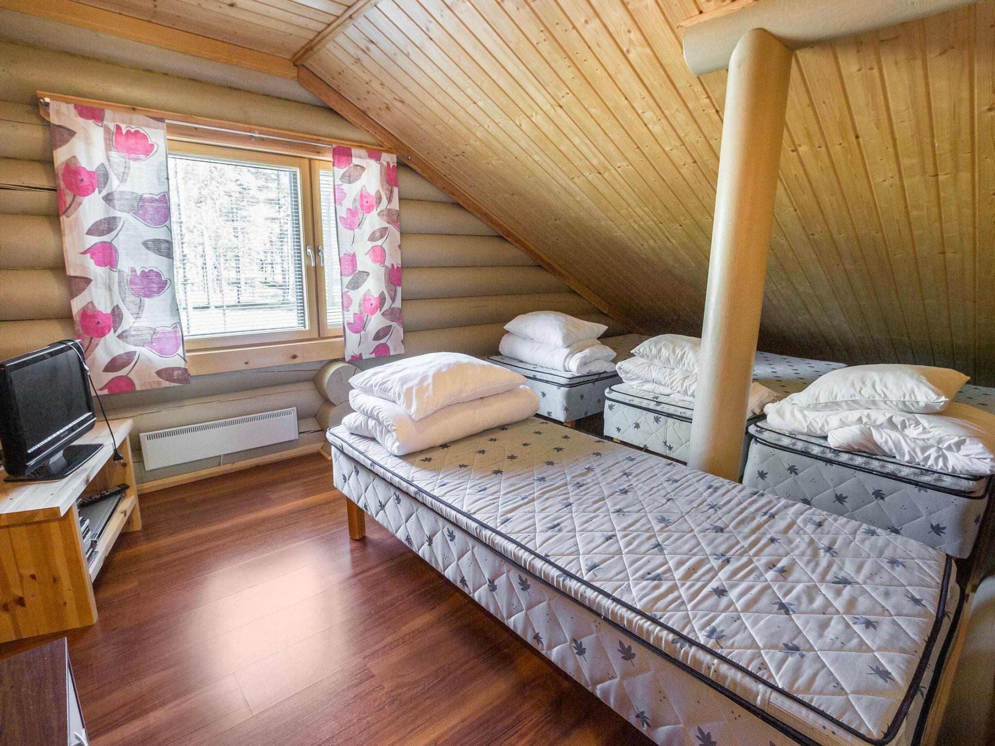 40 km north-east of Kolari, lake Ylläsjärvi 3 km, swimming beach 4,5 km. Log duplex apartment. Area 100 m² of which 30 m² on the loft. Livingroom/kitchen, two bedrooms each with two separate beds, loft with a large alcove with four beds, in loft TV for DVDs. Electric sauna, shower, separate toilet. Two porch, Wifi