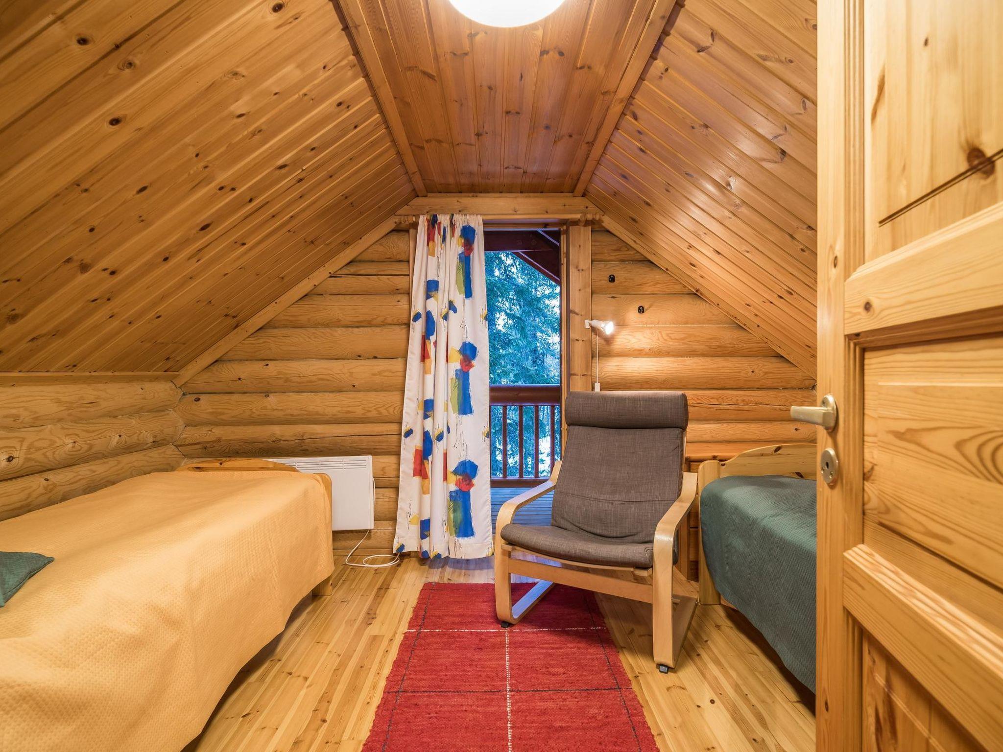 Seperate cottage made of round timber located 40 km nort-east of Kolari. Built 1994. Kitchen, living room, 1 bedroom downstairs with single bed (+ low extra bed which can be pulled out from under the bed), upstairs 2 bedrooms, one with doublebed and other with 2 seperate beds. Seperate toilet both upstairs and downstairs, dressing room, washing room, sauna. Open porch. Carport with skiwaxing room. There is Wi-fi.NOTE: Pets not allowed for the reservations made on 7.8.23 or later. Please, notice that cottage is not suitable for the persons allergic for pets.