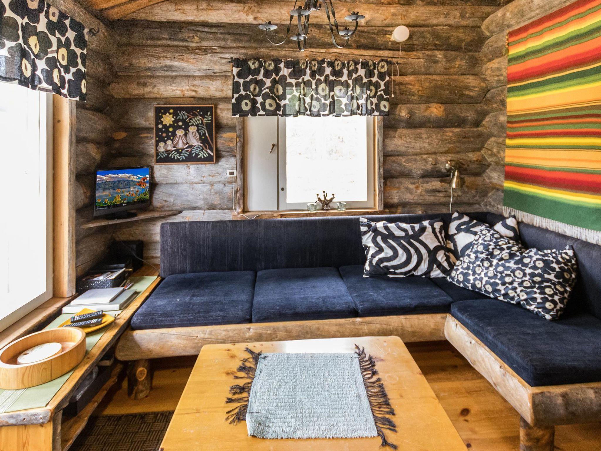 40 km North-East of Kolari, lake Ylläsjärvi 2,5 km, swimming beach 4 km. Log duplex apartment 1988 in Palovaara. Livingroom/kitchen (bar table as s dining table + 4 stools), two bedrooms, other with a double bed and other with a bunk bed and a loft (17 m², low room height). Electric sauna, shower, WC. Open porch. Travel bed for a child, feeding chair and potty.