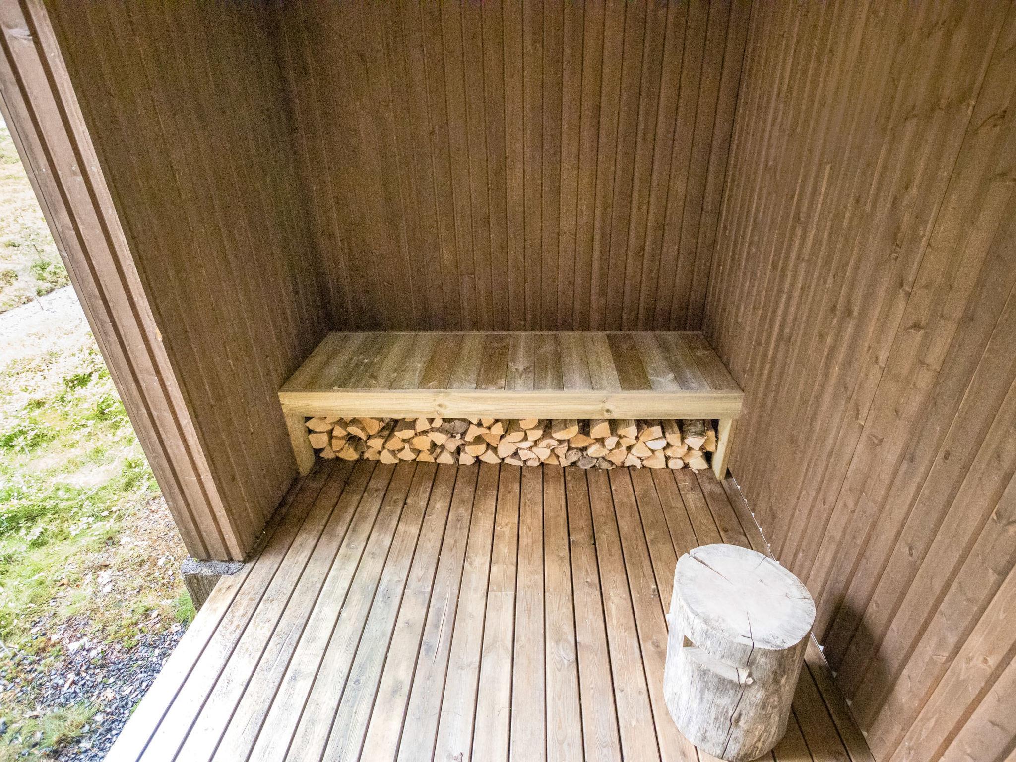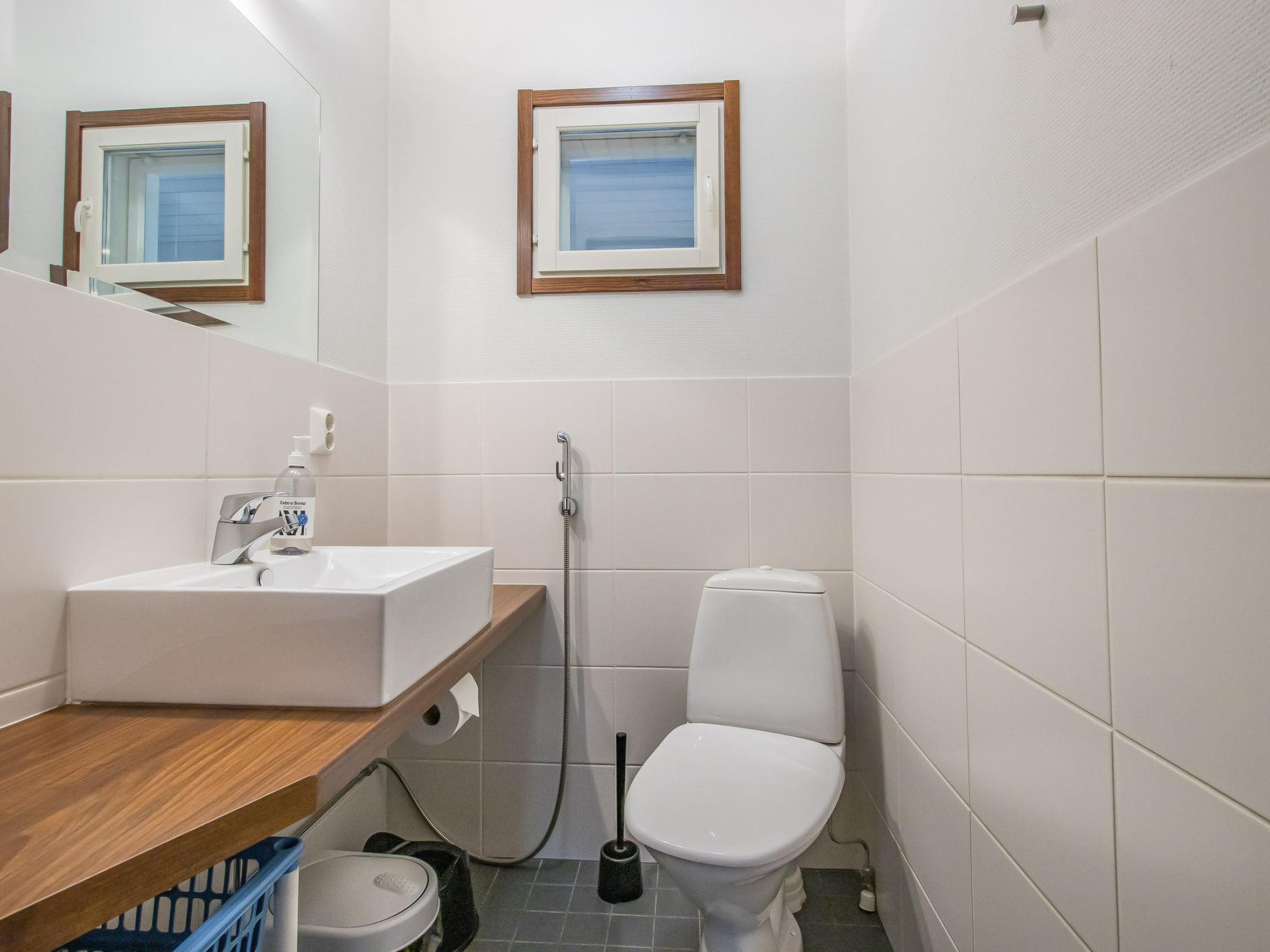 Downstairs: livingroom/kitchen, bedroom with two beds, utility room, washing room, electric sauna, two toilets and heated storage/maintenance room.