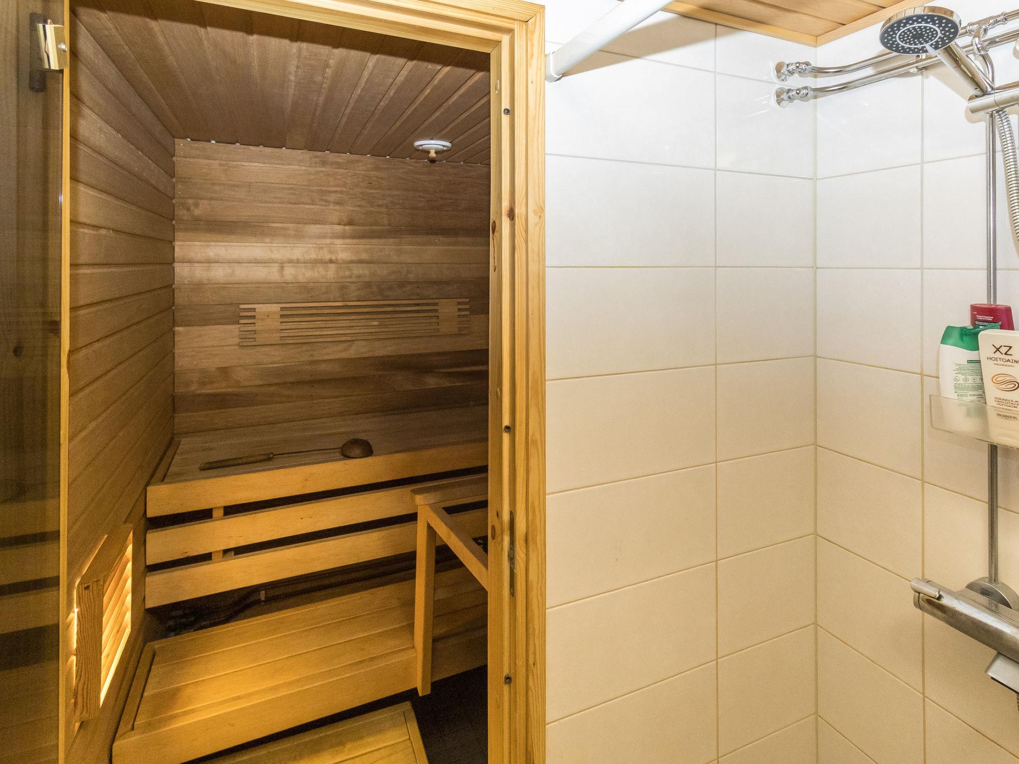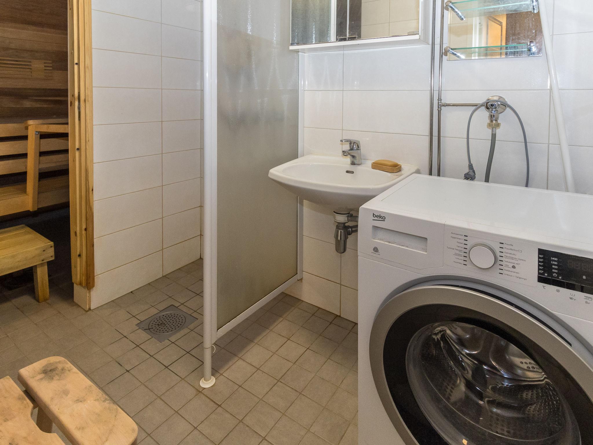 The sauna steams crown the day's outdoor activities, and the laundry room also has a washing machine for longer stays. A separate toilet brings everyday comfort.