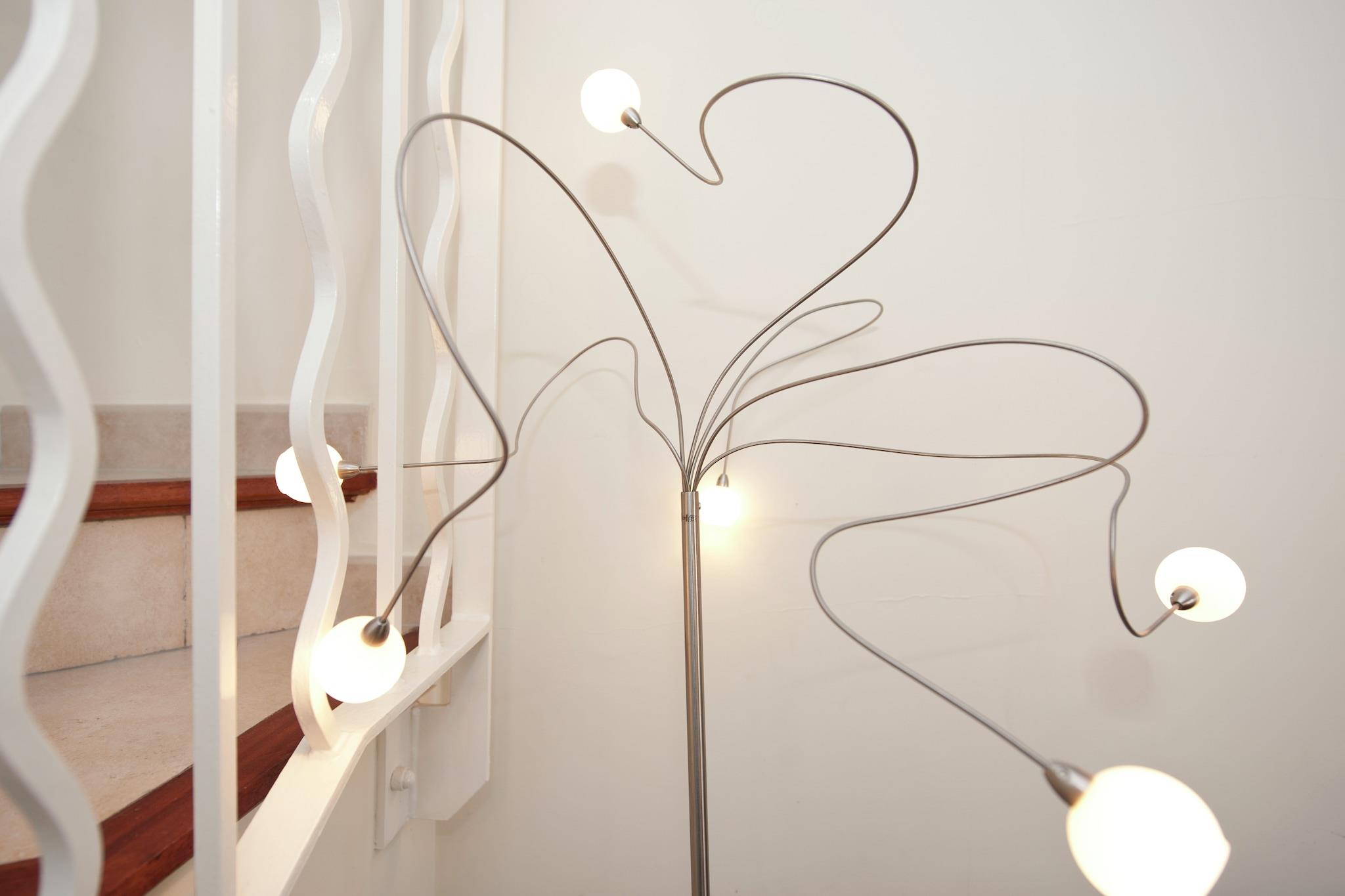 Ground floor: (hallway, Living room(TV(satellite), dining table, seating area, DVD player), open kitchen(electric kettle, oven, microwave, dishwasher, fridge-freezer, washing machine), toilet, air conditioning, terrace) On the 1st floor: (bedroom(single bed(90 x 200 cm), single trundle bed(90 x 200 cm)), bedroom(bunk bed), Bedroom with bathroom(double bed(160 x 200 cm), shower, washbasin), bathroom(bathtub with shower, 2x washbasin), toilet, Landing, balcony, terrace)