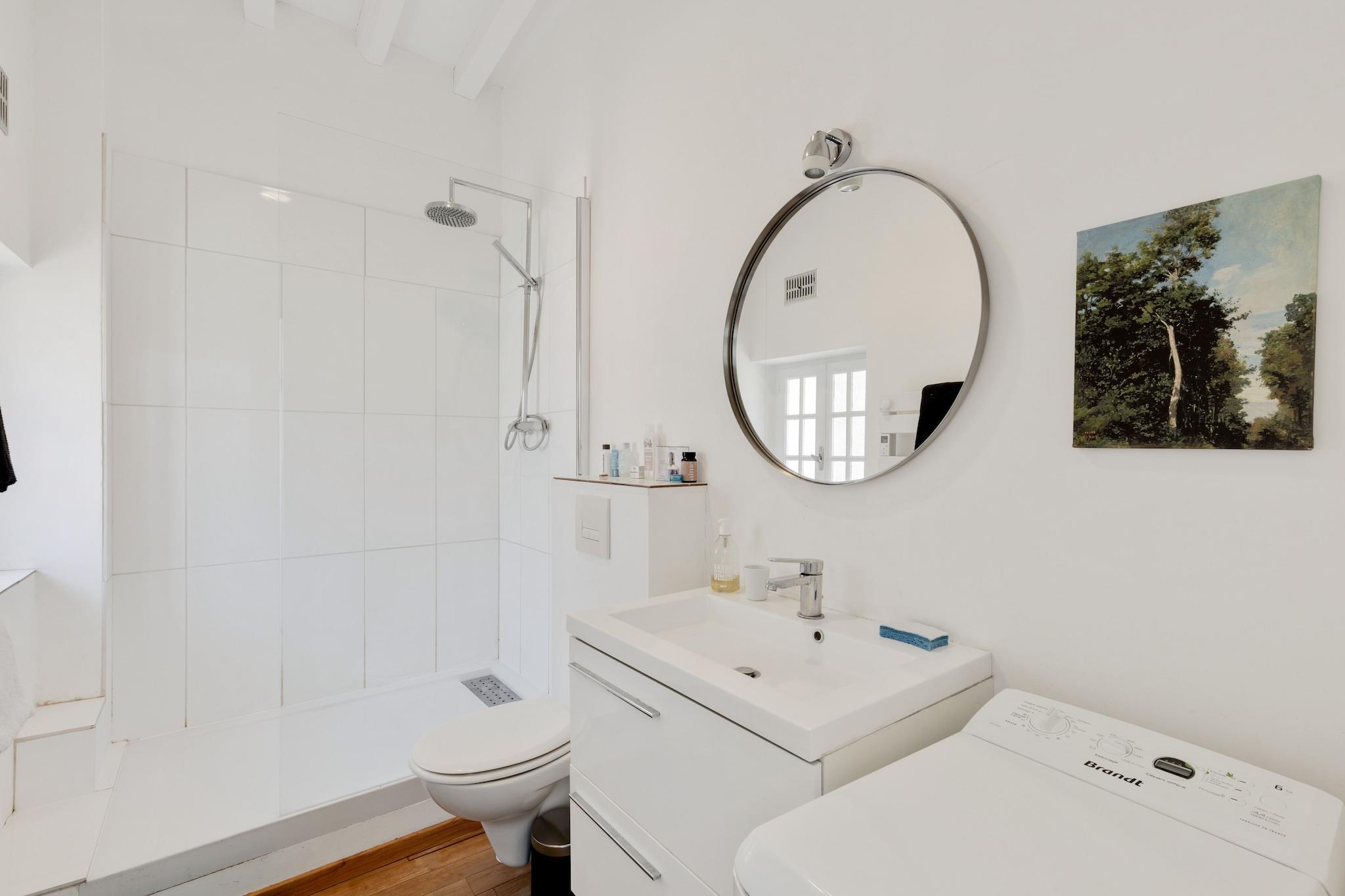 On the 1st floor: (Living room(dining table(4 persons)), Kitchen(electric kettle, cooker(4 ring stoves, induction), hood, coffee machine, oven, microwave, fridge-freezer), bedroom(double bed), bathroom(shower, washbasin, toilet), air conditioning) dishwasher, washing machine, air conditioning, courtyard(shared with other guests)