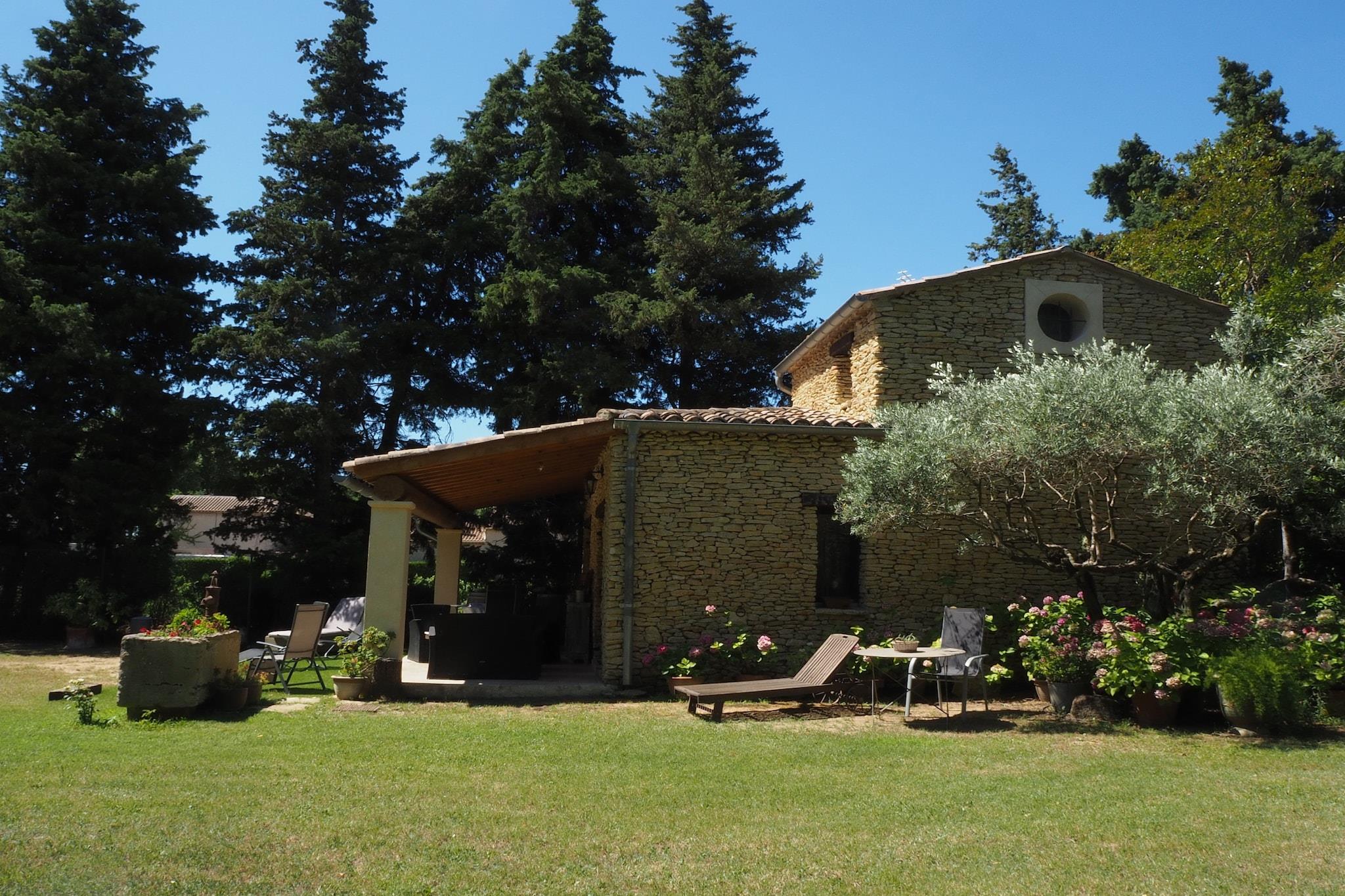 Between the famous Roman cities of Avignon and Orange lies this tastefully furnished natural stone house, very typical of the region. It has been renovated by the owners in Provençal style, with modern comforts. You have a cosy living room with open kitchen and dining area, two spacious bedrooms and a modern bathroom with ground-level shower. The covered terrace and the 1,500 sqm plot with lounge seating area, sun loungers and barbecue invite you to relax and enjoy the southern ambience in one of France's most famous wine-growing regions. Bédarrides is a large circular village and is situated on the banks of the river Ouvèze, where picnic areas have been set up. The nearby village of Châteauneuf-du-Pape spreads out at the foot of its fortress. Overlooking the 3,000 hectares of vineyards, you will get a taste of its famous wine here! Discover this beautiful wine-growing region with other famous wine appellations such as Vacqueyras, Beaumes-de-Venise, Gigondas at the foot of the Dentelles de Montmirail. In a few minutes you can reach a water park and a supervised lake in Monteux, where various sports activities such as canoeing, paddle, pedal boat, fitness can be practised.