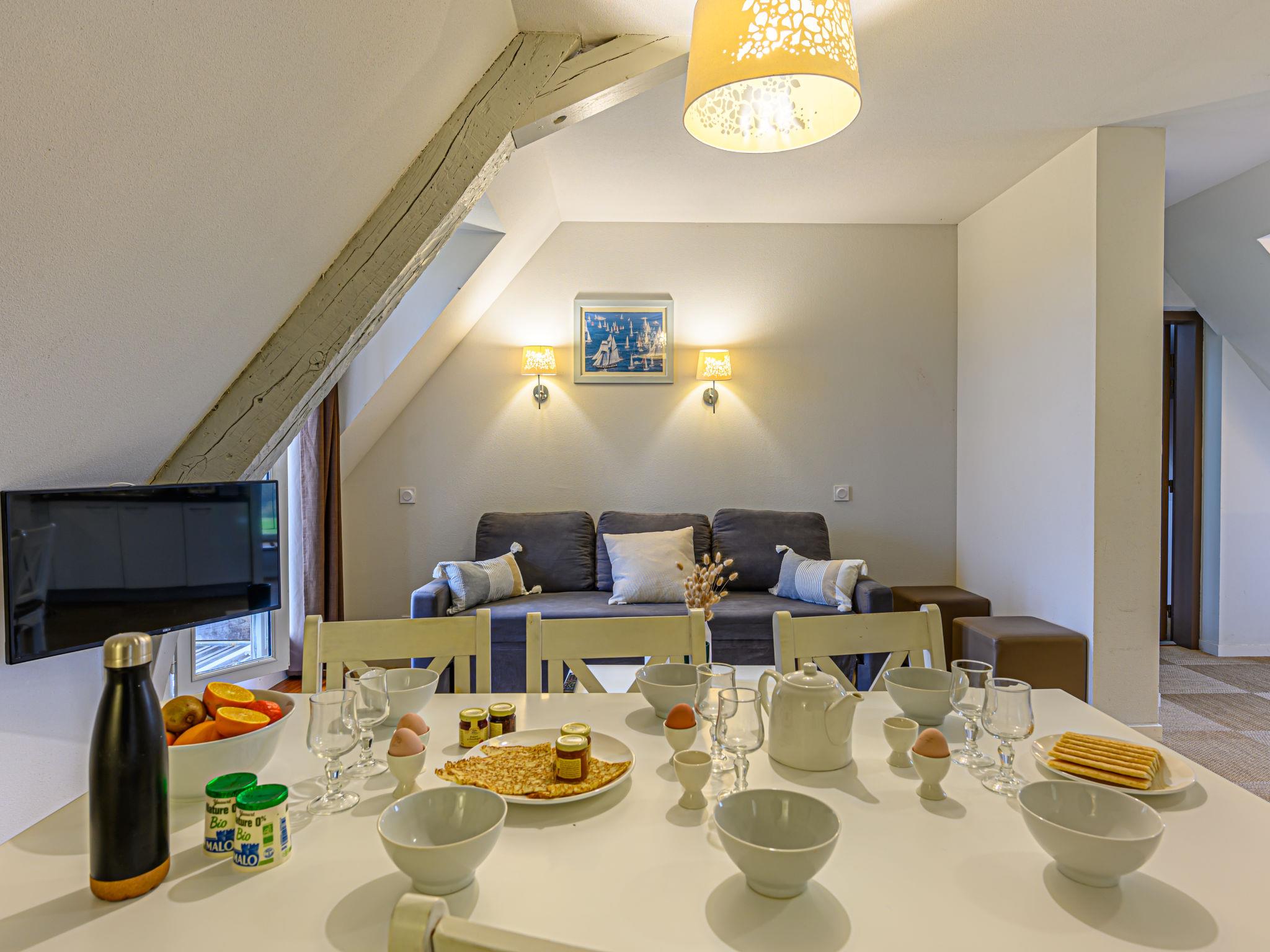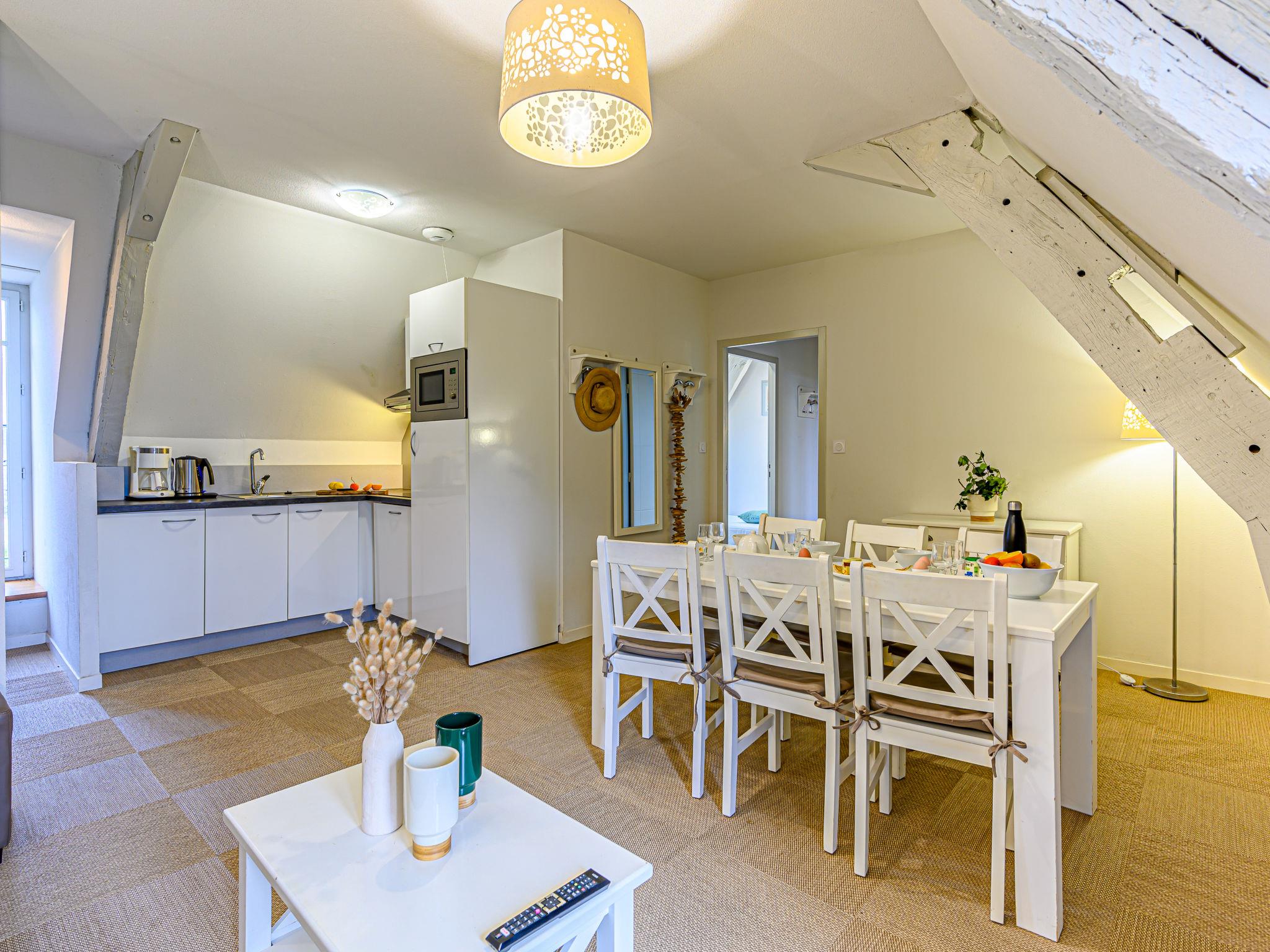"Château De Kergonano,", 3-room apartment 56 m2 on 2nd floor. Beautiful furnishings: living/dining room with 1 double sofabed (2 x 80 cm), TV (flat screen). 1 room with 1 french bed (1 x 140 cm, length 190 cm). 1 room with 2 beds. Kitchenette (dishwasher, 4 ceramic glass hob hotplates, kettle, microwave, electric coffee machine). Shower, sep. WC. Electric heating. View of the swimming pool and the garden. Facilities: Internet (WiFi, extra). Parking. Please note: non-smokers only. Maximum 1 small pet/ dog allowed. Smoke alarm. Daily cleaning and change of linen possible on request and at extra cost. Offer by a private individual according to Art. 155, IV of CGI.