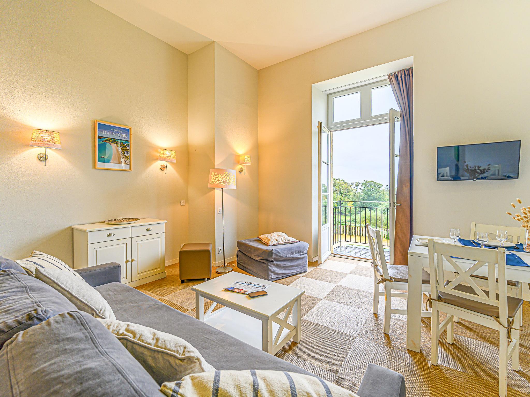 "Château De Kergonano", 3-room apartment 47 m2. Beautiful furnishings: living/dining room with 1 double sofabed (2 x 80 cm, length 190 cm), TV (flat screen). Exit to the balcony. 1 room with 1 french bed (1 x 140 cm, length 190 cm). 1 room with 1 x 2 bunk beds (90 cm, length 190 cm). Kitchenette (dishwasher, 4 ceramic glass hob hotplates, toaster, kettle, microwave, electric coffee machine). Shower, sep. WC. Electric heating. Balcony. View of the swimming pool and the garden. Facilities: Internet (WiFi, free). Parking. Please note: suitable for families. Non-smokers only. Smoke alarm. Daily cleaning and change of linen possible on request and at extra cost. Offer by a private individual according to Art. 155, IV of CGI.