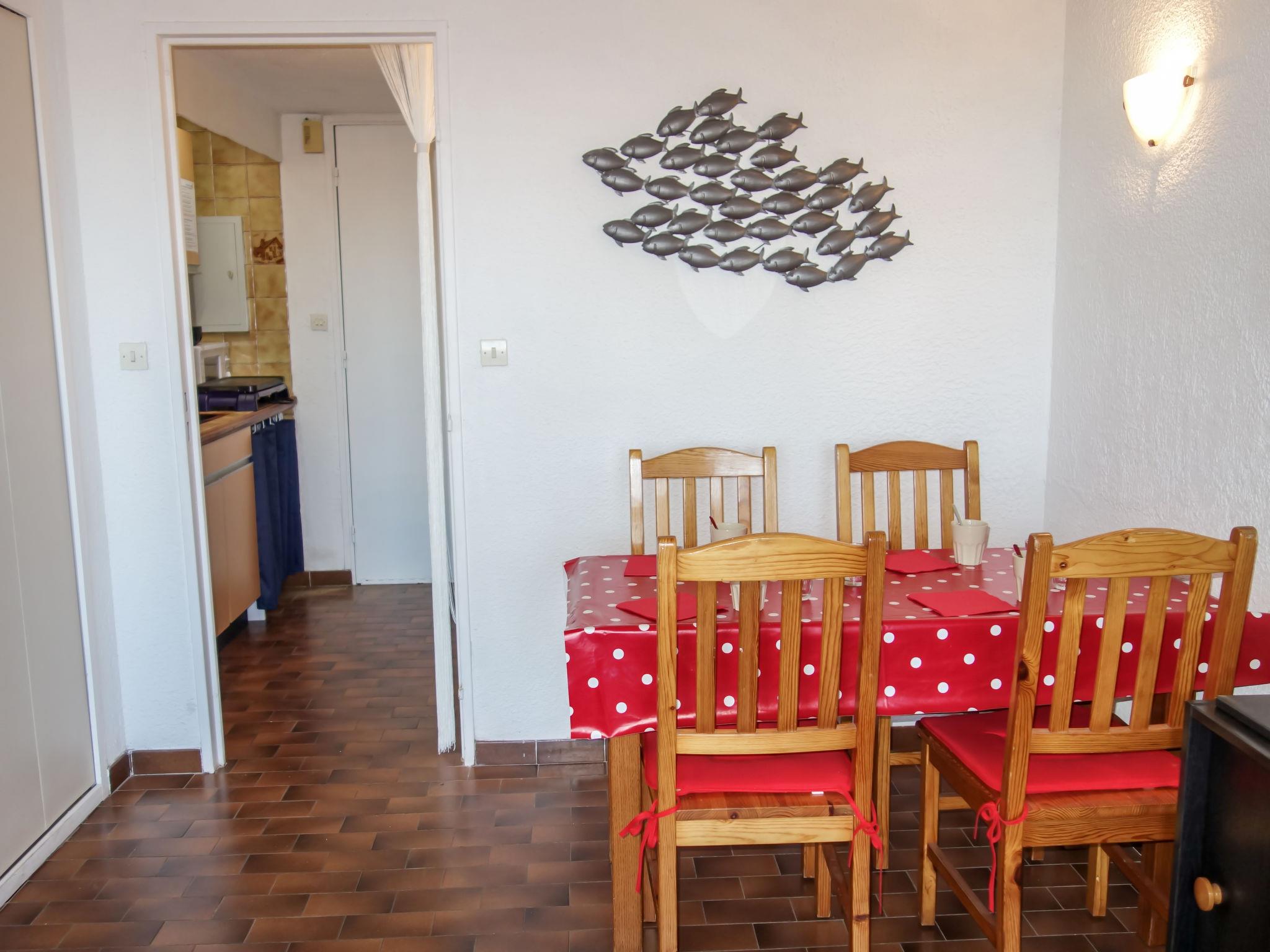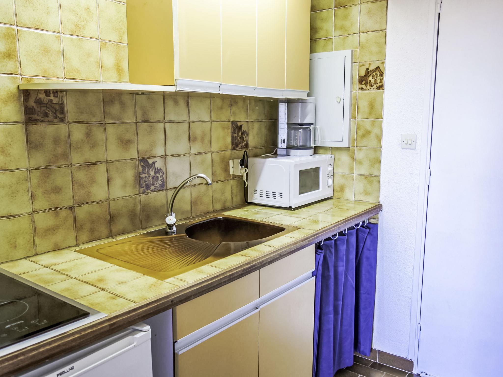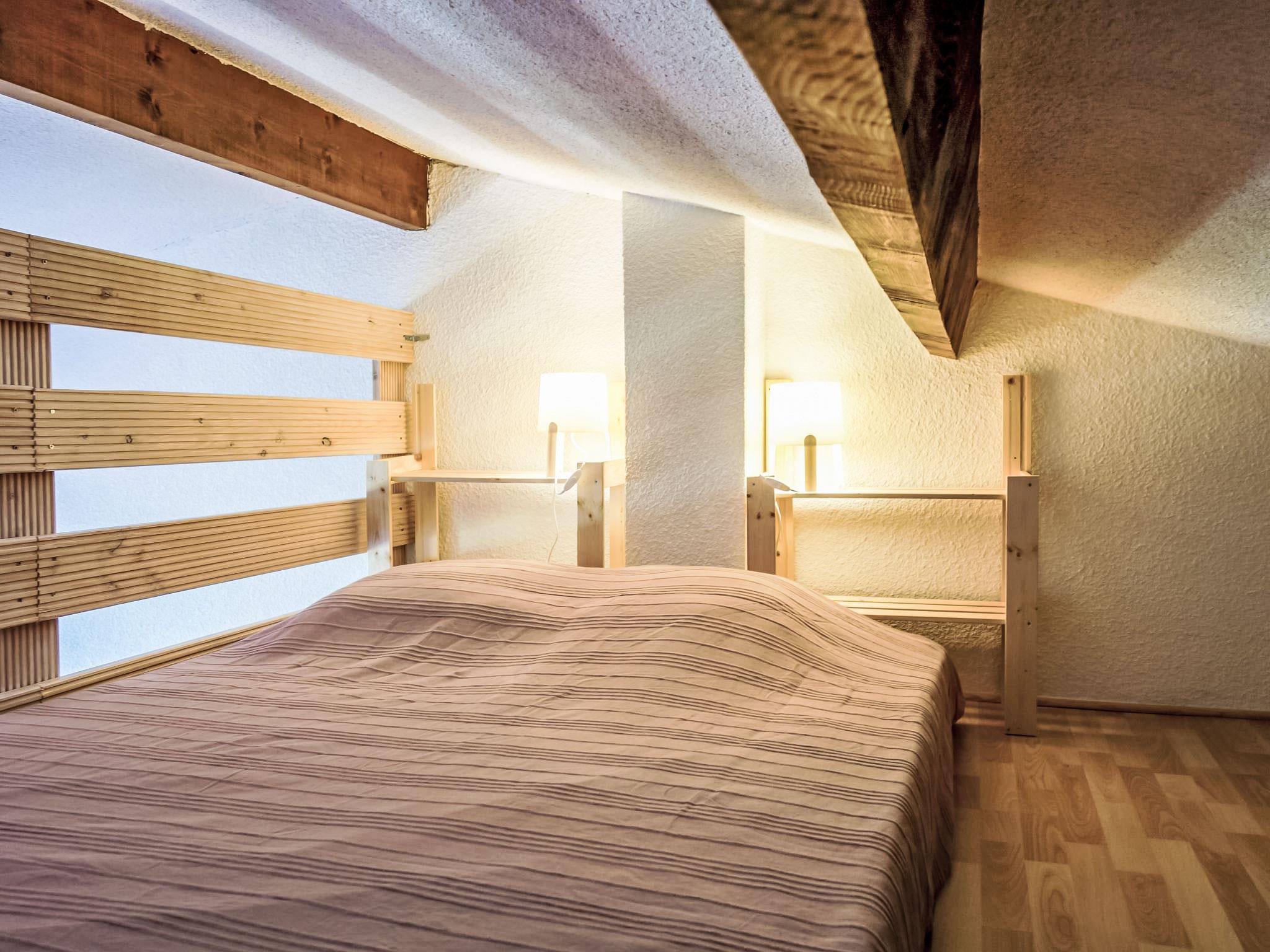 1-room studio 28 m2 on 2 levels on 1st floor. Simple and practical furnishings: living/dining room with 1 double sofabed (130 cm, length 190 cm), TV and fan. Exit to the terrace. Kitchenette in the entrance (2 ceramic glass hob hotplates, kettle, microwave, electric coffee machine). Bath/WC. Electric heating. Upper floor: (steep stair) open gallery with sloping ceilings, ceiling height 65 - 140 cm with 1 french bed (140 cm, length 190 cm), fan. Terrace 6 m2, roofed, south-east facing position. Terrace furniture. View of the sea. Facilities: Internet (WiFi, extra). Parking space n 63. Please note: TV only FR. Smoke alarm. 83009 000020 RR
