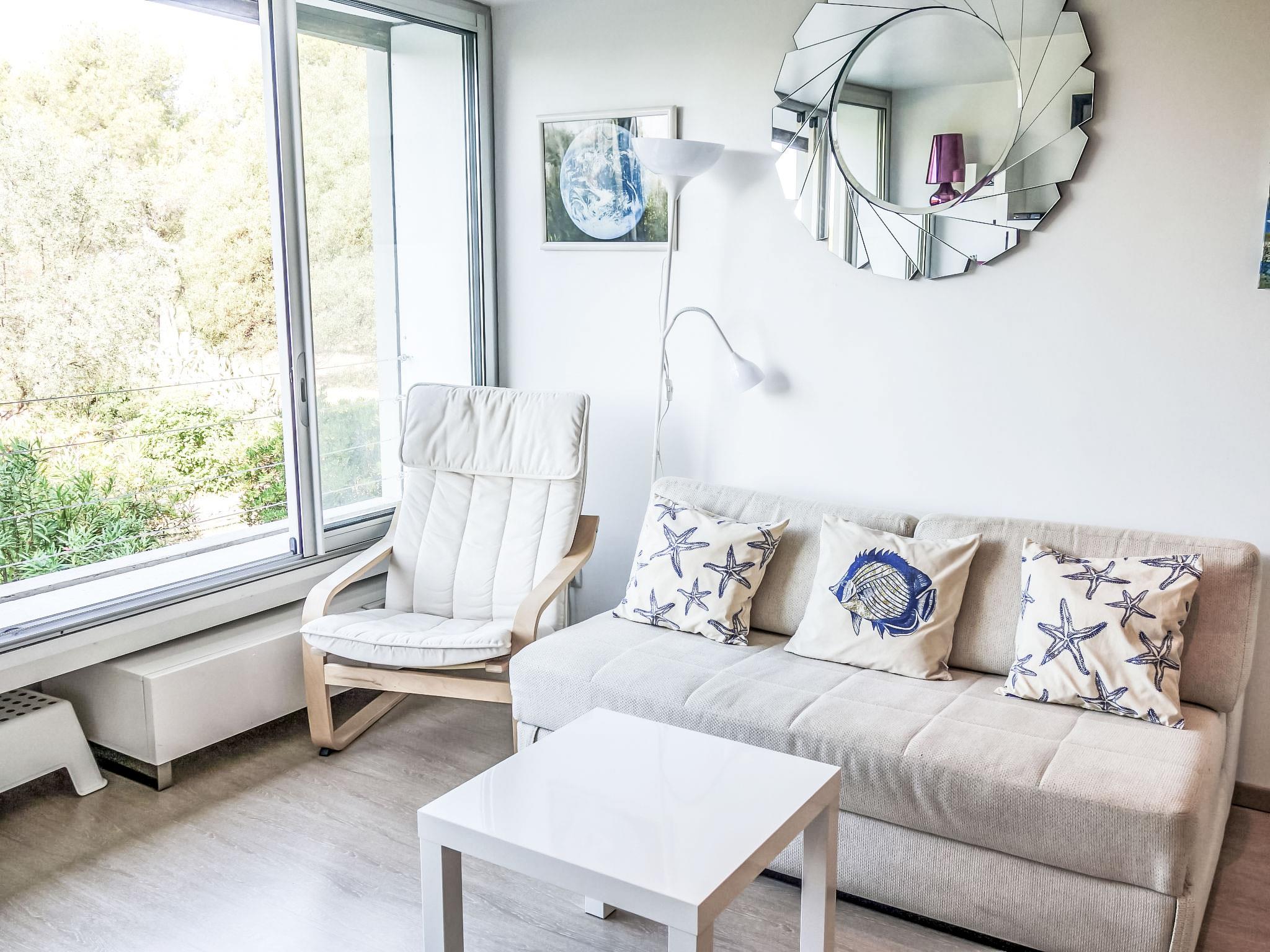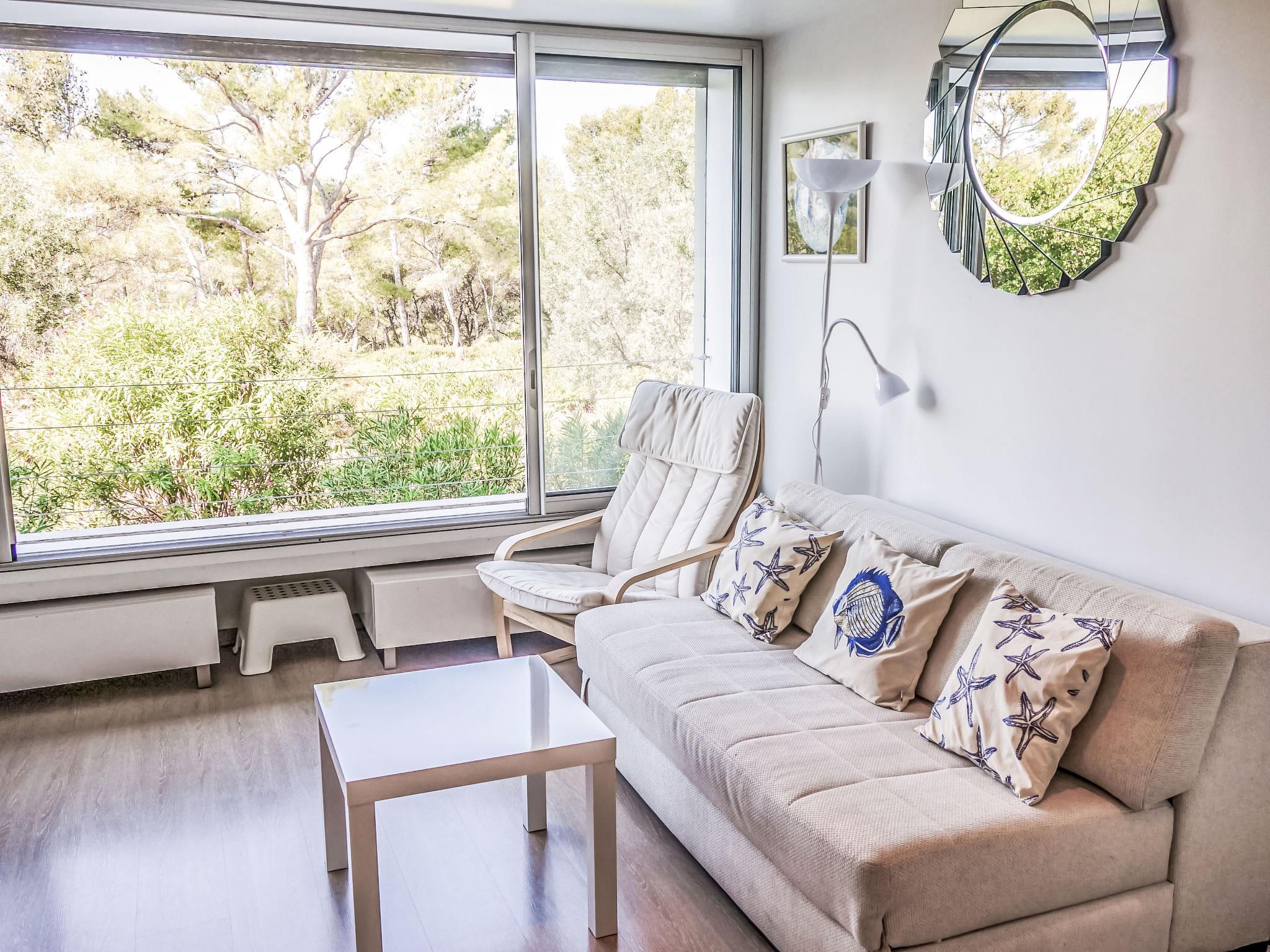 Beautiful apartment house "Athéna Résidence", 3 storeys, surrounded by trees. In the district of Pierreplane 3 km from the centre of Bandol, 50 m from the sea, in a cul-de-sac, in the countryside. For shared use: park 14 ha (fenced), swimming pool fenced (25 x 12 m, depth 110 - 350 cm, seasonal availability: 03.Apr. - 30.Oct. pool opening hours: 08:30-19:00). Tennis (01.Jul. - 31.Aug.) (extra). In the complex: reception, lift. Shop 1.5 km, grocery 1.5 km, bus stop "Arrêt Casino" 3 km, railway station "Gare de Bandol" 2.5 km, sandy beach 3 km, shingle beach 400 m. Sports harbour 2.8 km, golf course (18 hole) 6 km, walking paths from the house 50 m. Nearby attractions: Chemins de randonnées pédestres 50 m. Hiking paths: Sainte Baume, Sainte Victoire, Calanques Port-Cros, Porquerolles, Ile verte, Embiez, Figuerolles, Cassis. Please note: car recommended. 24hr guard. Residence with electric gates. The keys‘ handover takes place by the agency Interhome in Saint Cyr Sur Mer, 9 km.