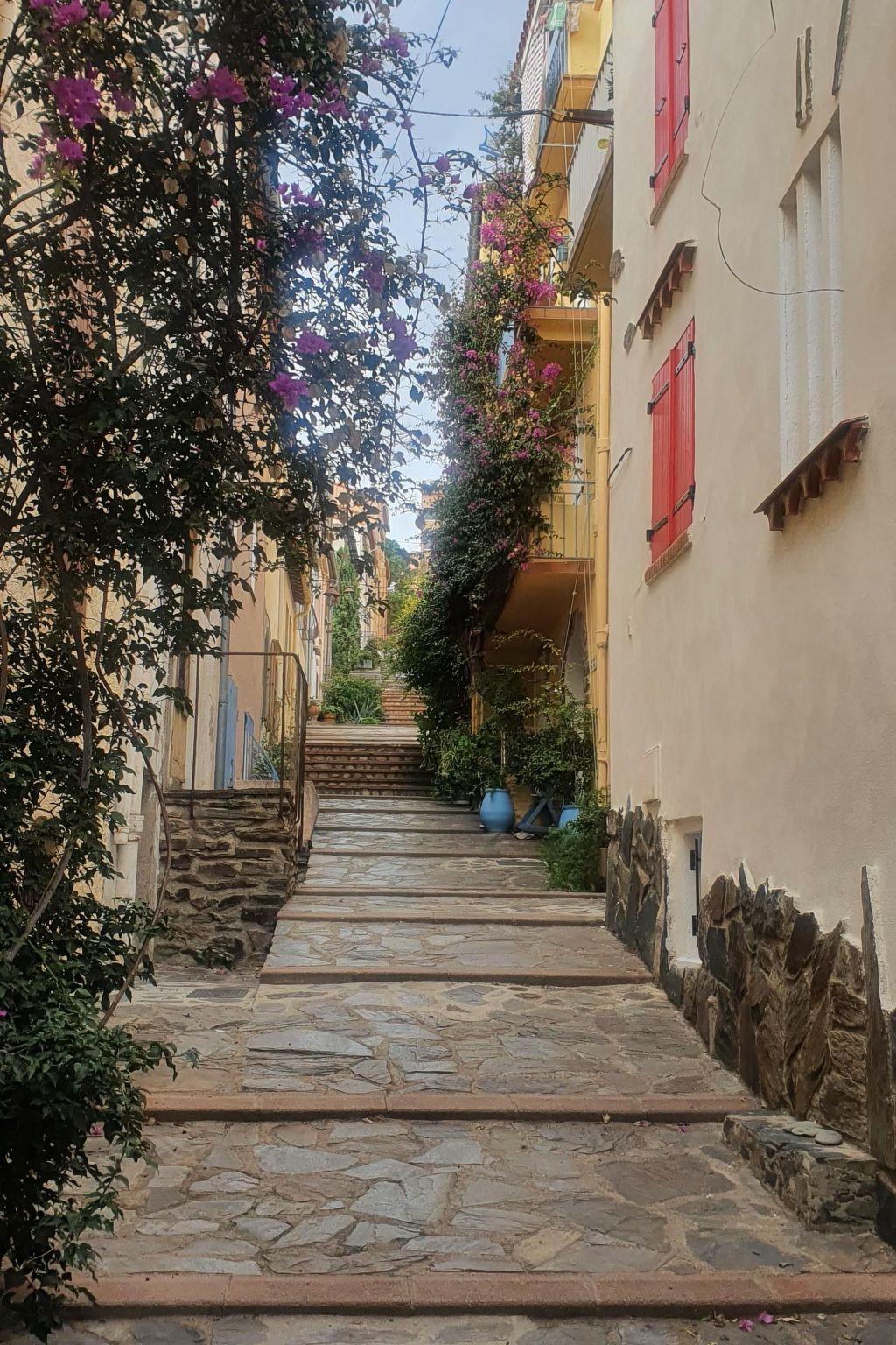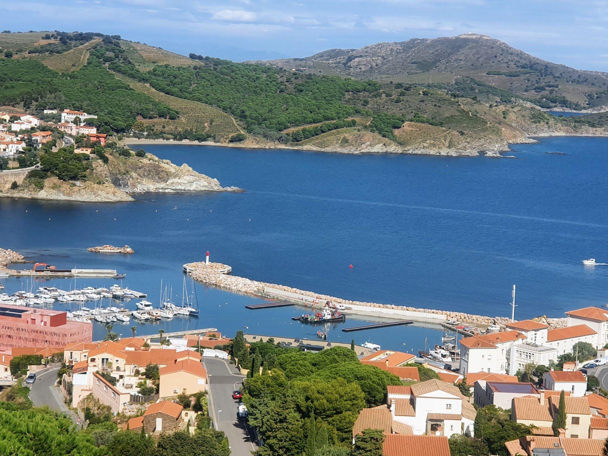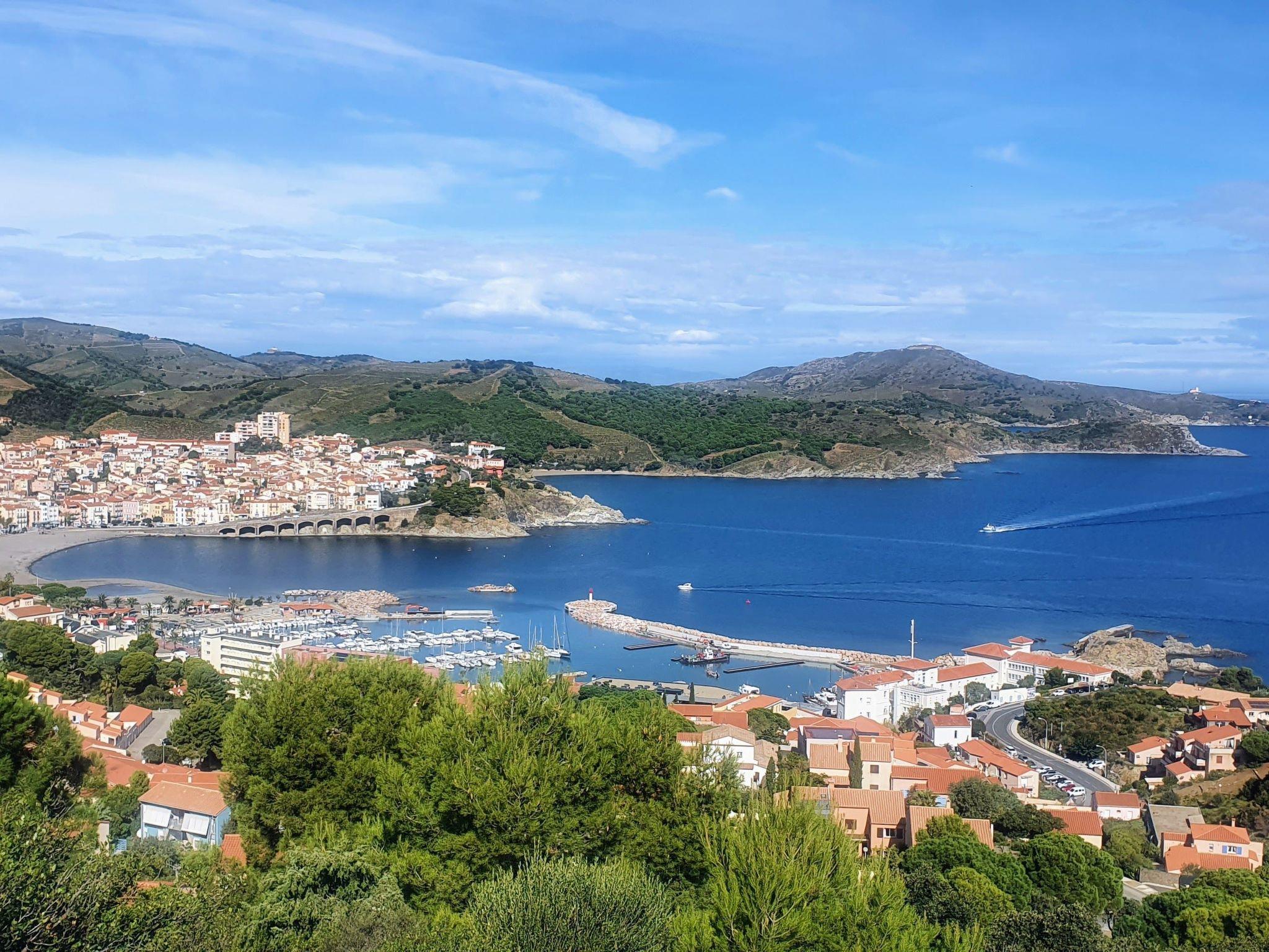 This studio apartment in an elevated location and with a great sea view is in Banyuls-sur-Mer in the south of France, just a few hundred metres from the sea.